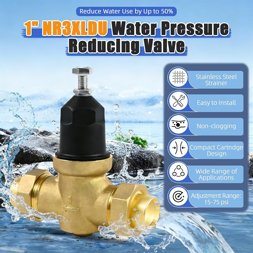 Efficiency & Savings: 1 inch NR3XLDU can reduce water usage by 50% when reducing water pressure from 100 to 50 psi. Helps to lower water bills and heating costs