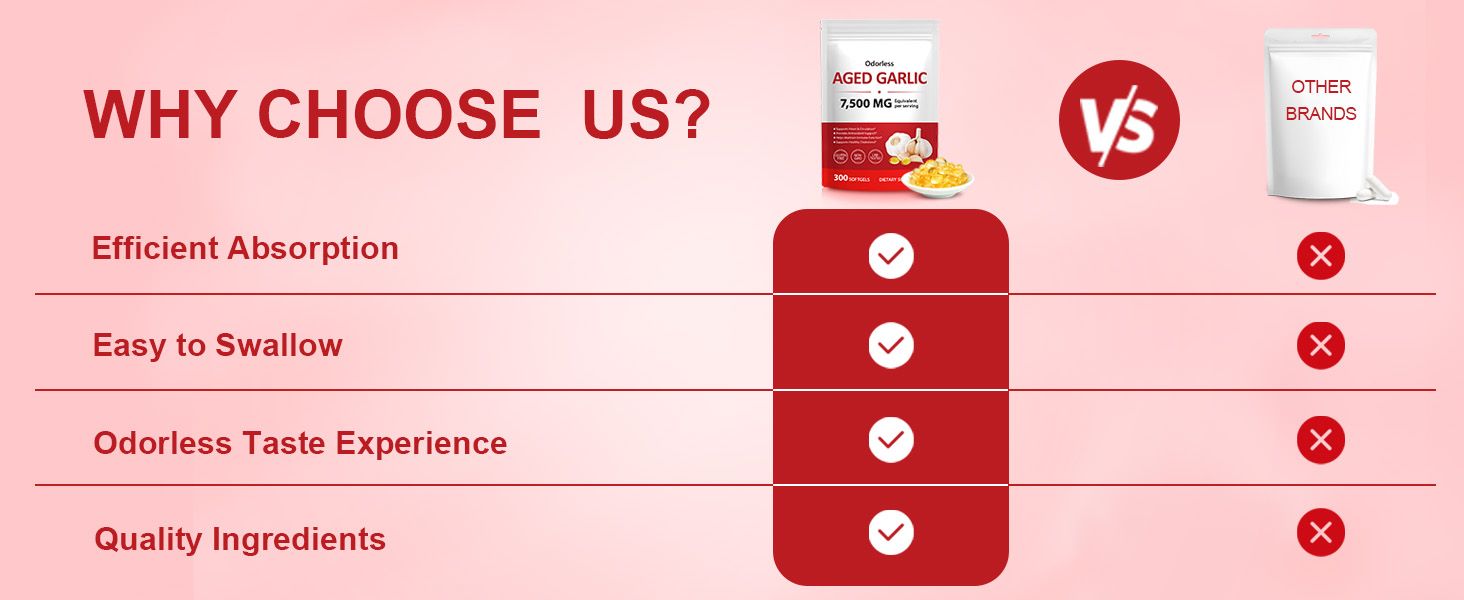 • ⭐مكمل الثوم التقليدي: مصنوع من زيت الثوم، وهو مكون نباتي يستخدم على نطاق واسع وله تاريخ طويل من الاستخدام التقليدي. مصممة للمكملات الغذائية اليومية.