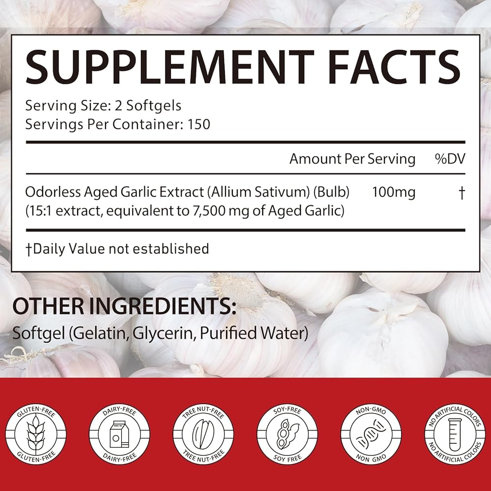 • ⭐ كبسولات هلامية تتحكم في الرائحة: كبسولات هلامية مركبة خصيصًا لتقليل رائحة الثوم. سهل البلع ومناسب للروتين اليومي بدون مذاق قوي.