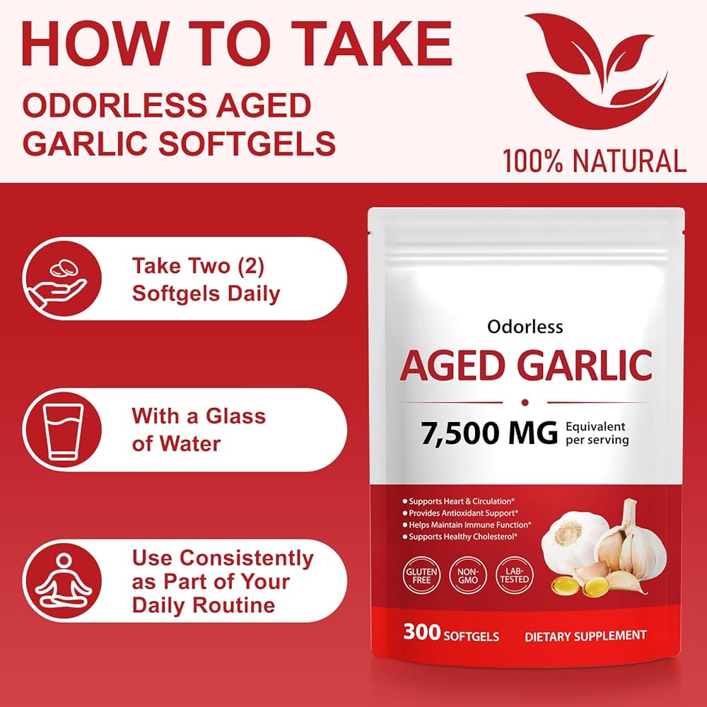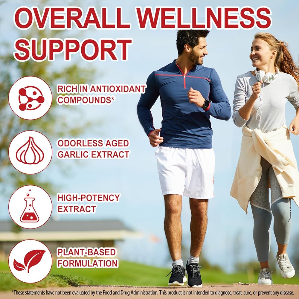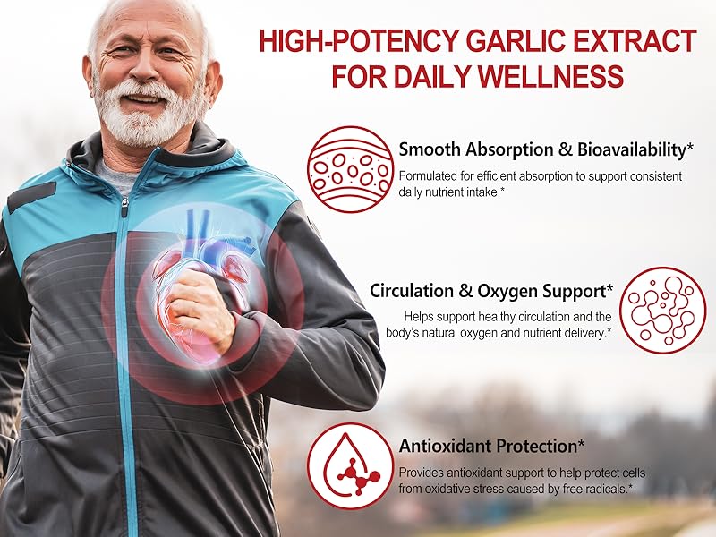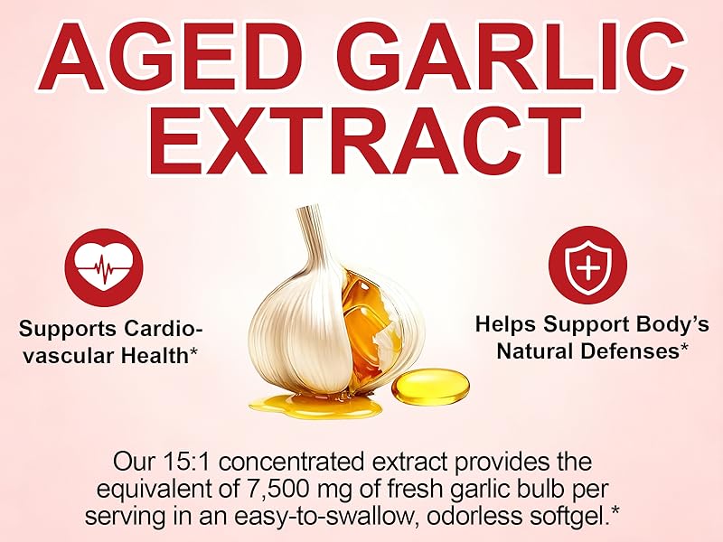 【دعم العافية】الثوم المعتق هو مصدر طبيعي لمضادات الأكسدة التي تساعد على دعم صحة القلب والأوعية الدموية والمناعة. تحتفظ تركيبتنا المتقدمة بالمركبات النشطة الموجودة في الثوم مع تقليل الأليسين للحصول على تجربة سلسة وخالية من الروائح.