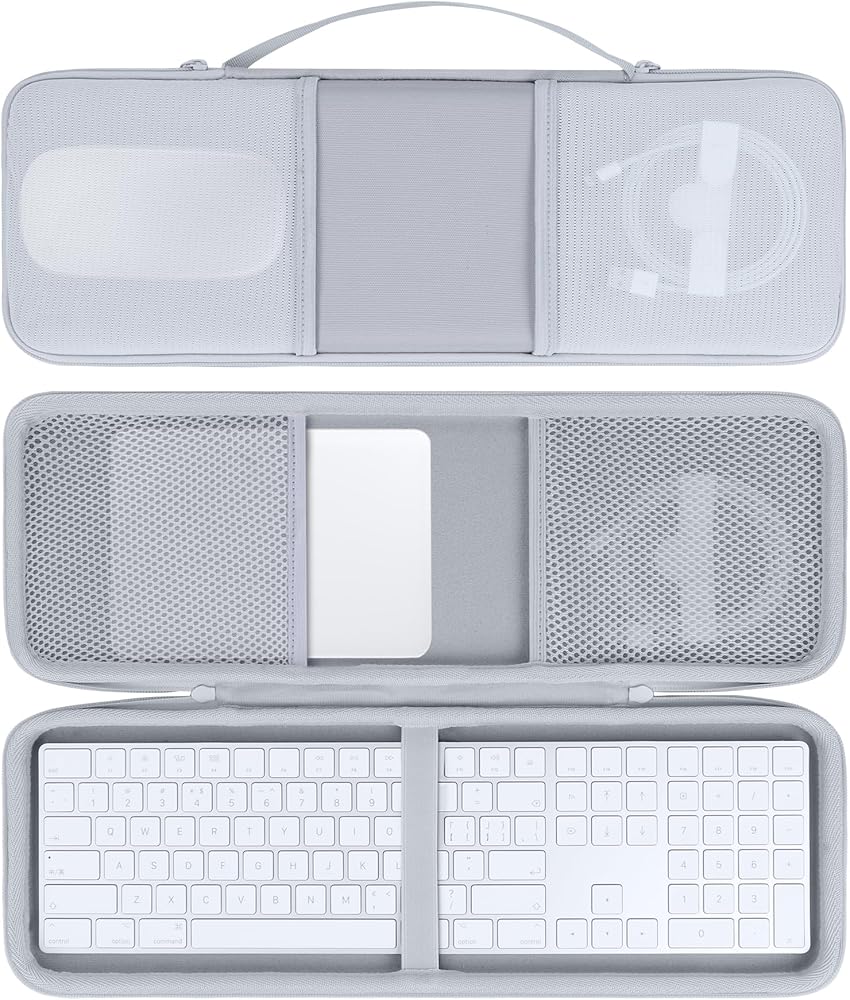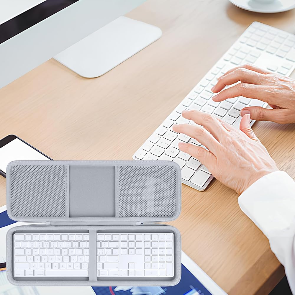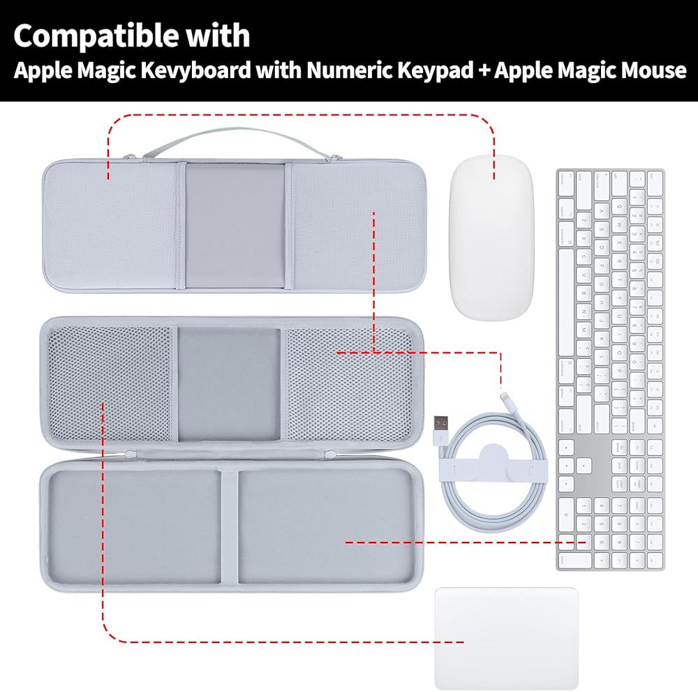 • سهلة الحمل: تشتمل الحافظة على مقبض حمل متكامل ومريح يجعل نقل لوحات المفاتيح اللاسلكية الخاصة بك إلى العمل أو المدرسة أو منزل الأصدقاء أمرًا سهلاً. يتناسب تصميمه خفيف الوزن بسهولة مع حقائب الظهر أو حقائب السفر، مما يضمن أن لوحة مفاتيح الكمبيوتر اللوحي لديك جاهزة دائمًا للعمل أينما ذهبت. يلاحظ! حالة فقط! (لوحة مفاتيح Apple Magic مع لوحة مفاتيح رقمية وأي ملحقات غير متضمنة)