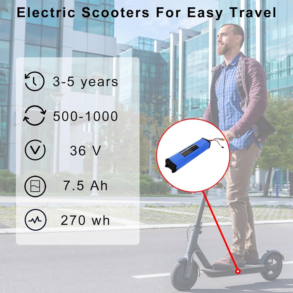 أداء عالٍ: جرّب فوائد مجموعة البطاريات البديلة العامة عالية الطاقة بقدرة 270 وات في الساعة المصممة لدورة حياة طويلة، وإخراج طاقة قوي، وأداء أمان جيد، مما يوفر طاقة موثوقة للسكوتر الكهربائي الخاص بك.