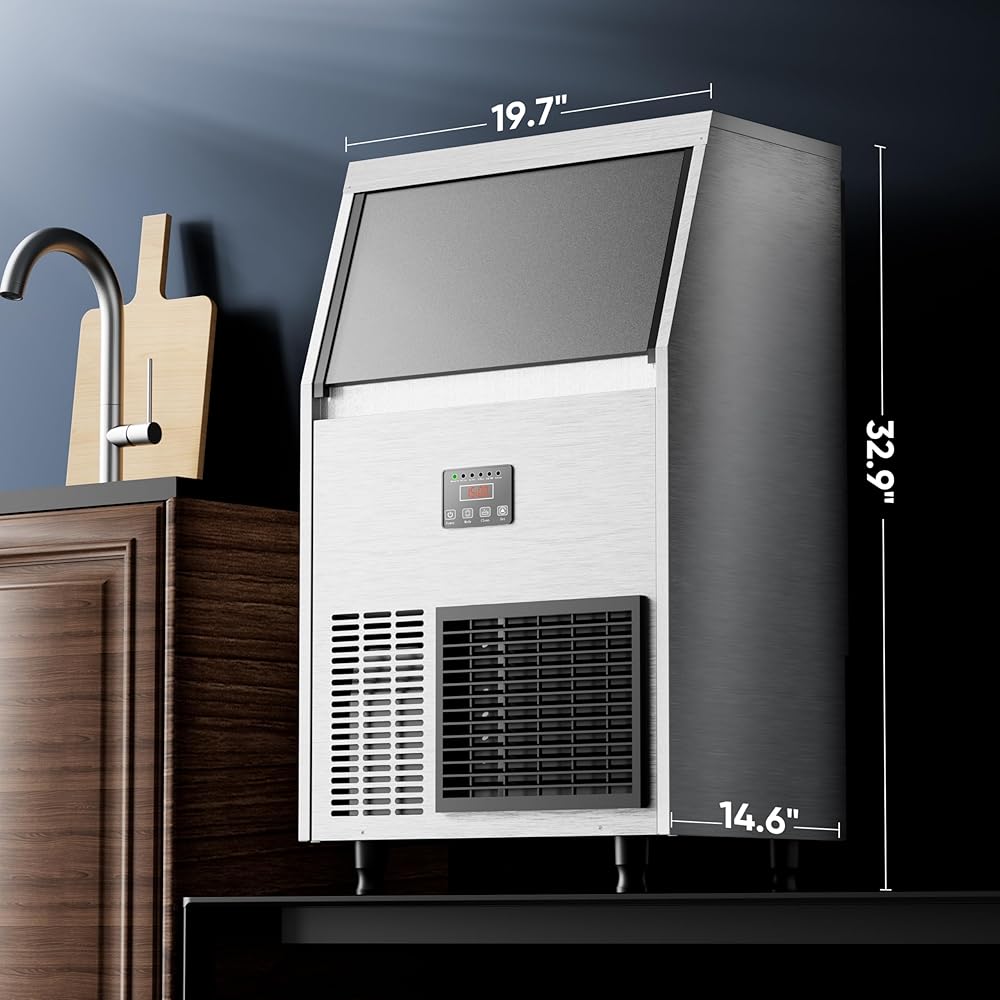 موفر مساحة أنيق: يبلغ عرضه 19.7 بوصة، وعمقه 14.6 بوصة، وارتفاعه 32.9 بوصة، ويمكن بسهولة دمج الوحدة المدمجة المستقلة تحت الطاولات أو استخدامها قائمة بذاتها، مع نظام تبريد الهواء للتنفس الأمامي لمنع ارتفاع درجة الحرارة، وهو شائع في المكاتب أو غرف الاجتماعات، وأيضًا صانع ثلج صغير رائع للحانات. بدلاً من التوجه في اللحظة الأخيرة إلى المتجر لشراء أكياس الثلج، ما عليك سوى النقر فوق الزر.