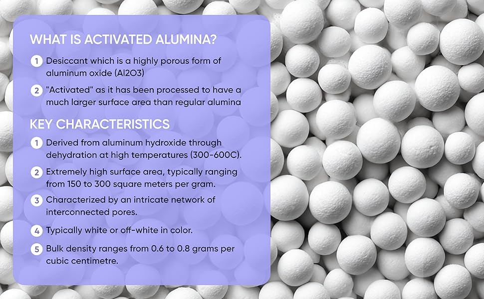 خرزات الألومينا المجففة عالية الأداء مصممة لامتصاص الرطوبة العميقة في البيئات الصناعية والتجارية والمختبرية - مثالية لتجفيف الهواء والغاز والسوائل.