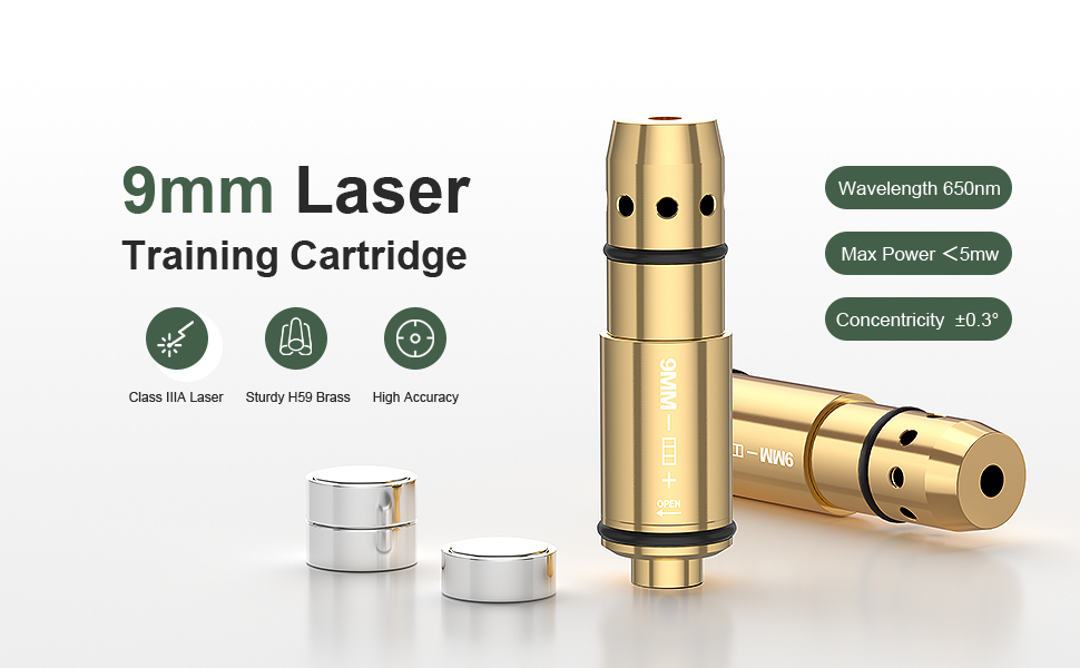 【ليزر السطوع】الليزر من الفئة III A، الطول الموجي 650 نانومتر، الطاقة أقل من 5 ميجاوات. تتميز خرطوشة التدريب هذه مقاس 9 مم بشعاع ساطع من 15 إلى 100 ياردة، ويمكن للمبتدئين أيضًا استخدامها بسهولة. يتضمن التصميم المُطوَّر فتحات للغطاء المفاجئ، مما يسمح بسهولة استبدال الحشية المطاطية للغطاء المفاجئ وإطالة عمر الخدمة.