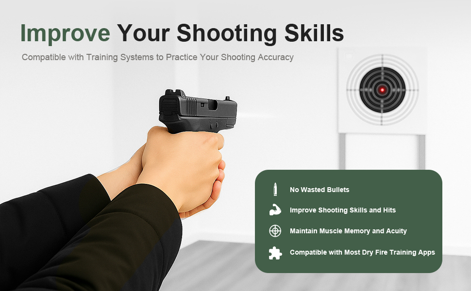 【دقة عالية】تخضع خرطوشة التدريب لاختبار صارم لمركز الليزر. مع تركيز ± 0.3 درجة، يمكنه محاكاة المقذوفات الحقيقية بدقة والتكيف مع مجموعة متنوعة من سيناريوهات التدريب. صغيرة وخفيفة الوزن، وسهلة الحمل، يمكنك ممارسة مهارات الرماية في سيناريوهات مختلفة.