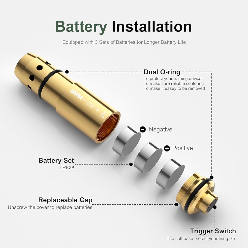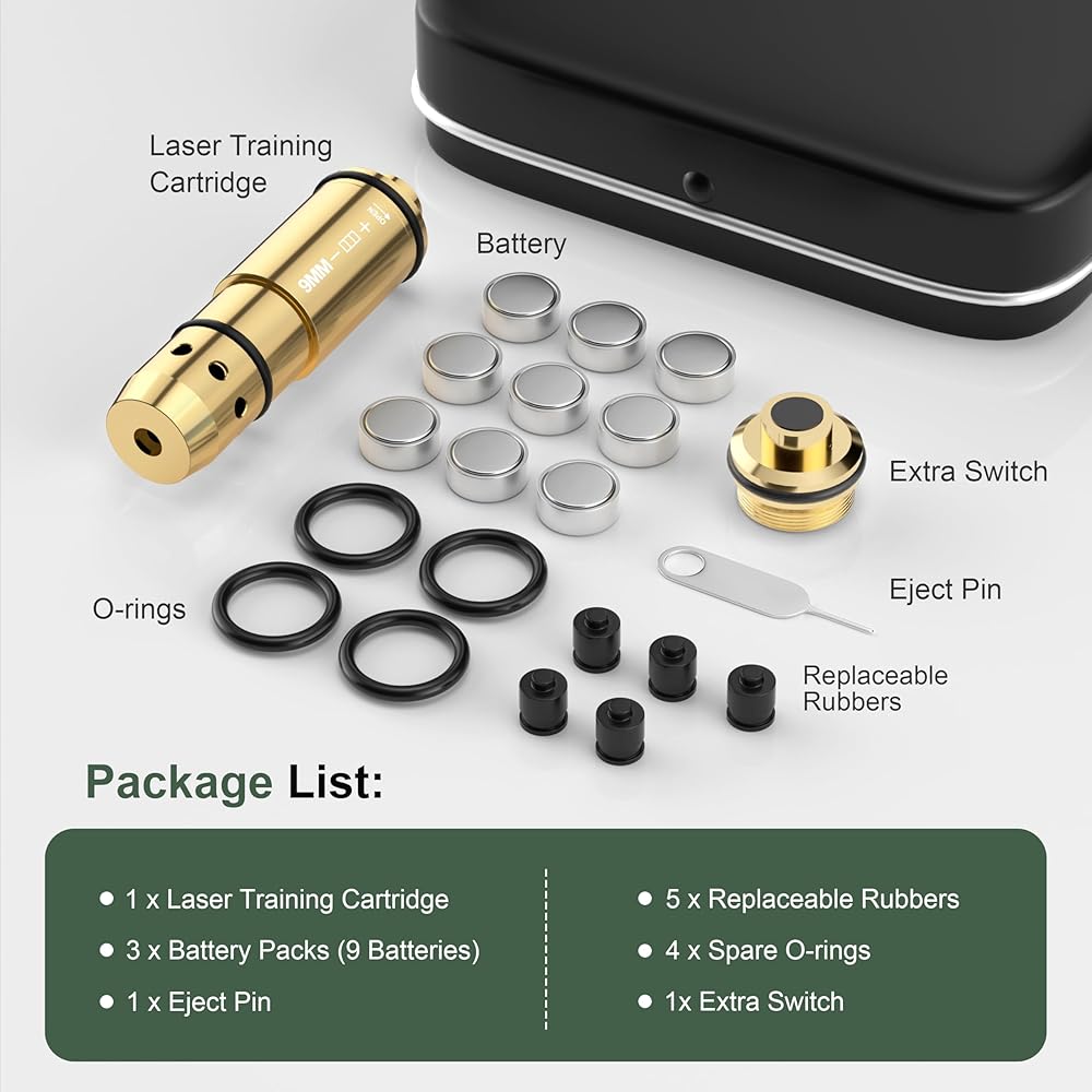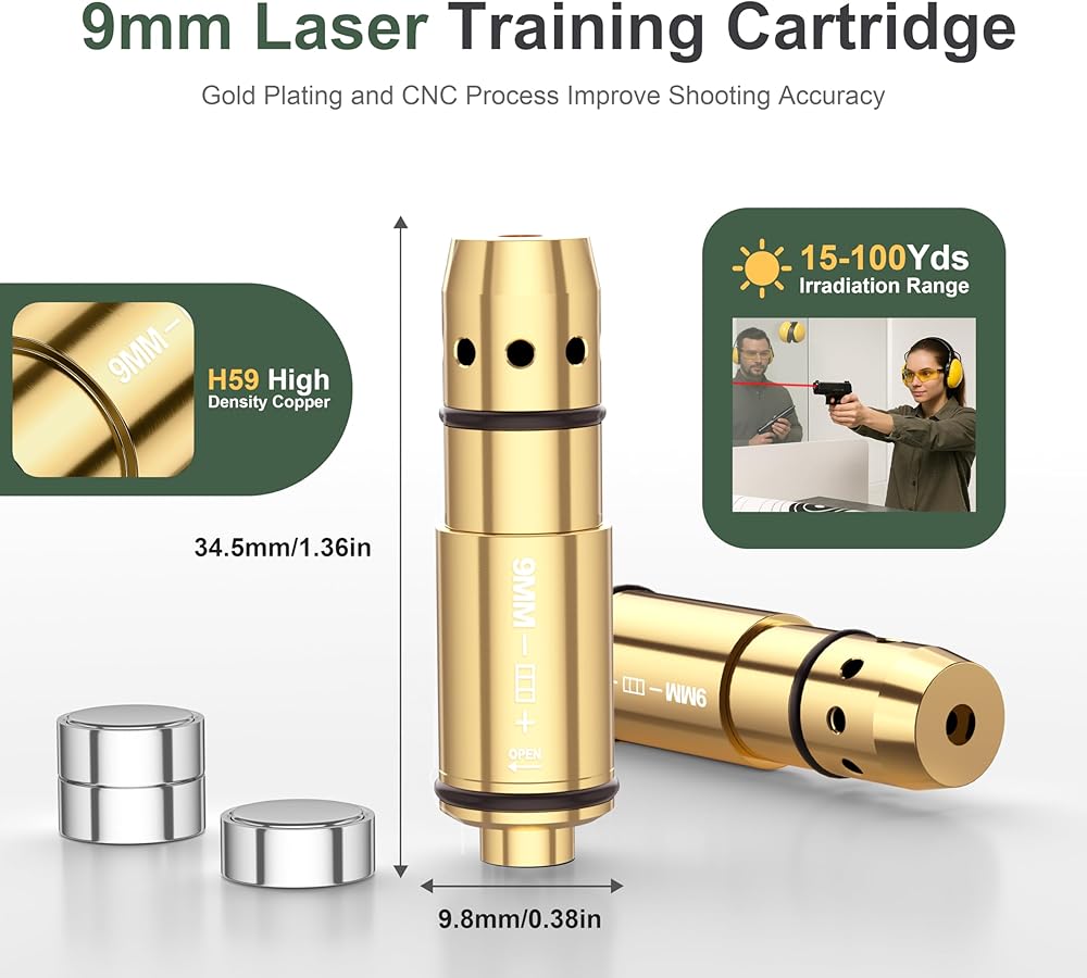【التوافق: خرطوشة الليزر الجافة مناسبة بشكل أساسي لعيار 9 مم، والشعاع مناسب لمعظم أنظمة التدريب على الرماية. تتميز بتصميم رأس مدبب أكثر توافقًا مع جهازك من الخراطيش المسطحة الأخرى وأقل عرضة للتكدس. يمكنك التدريب في المنزل دون الذهاب إلى نطاق الرماية، مما يوفر وقتك وتكاليفك.