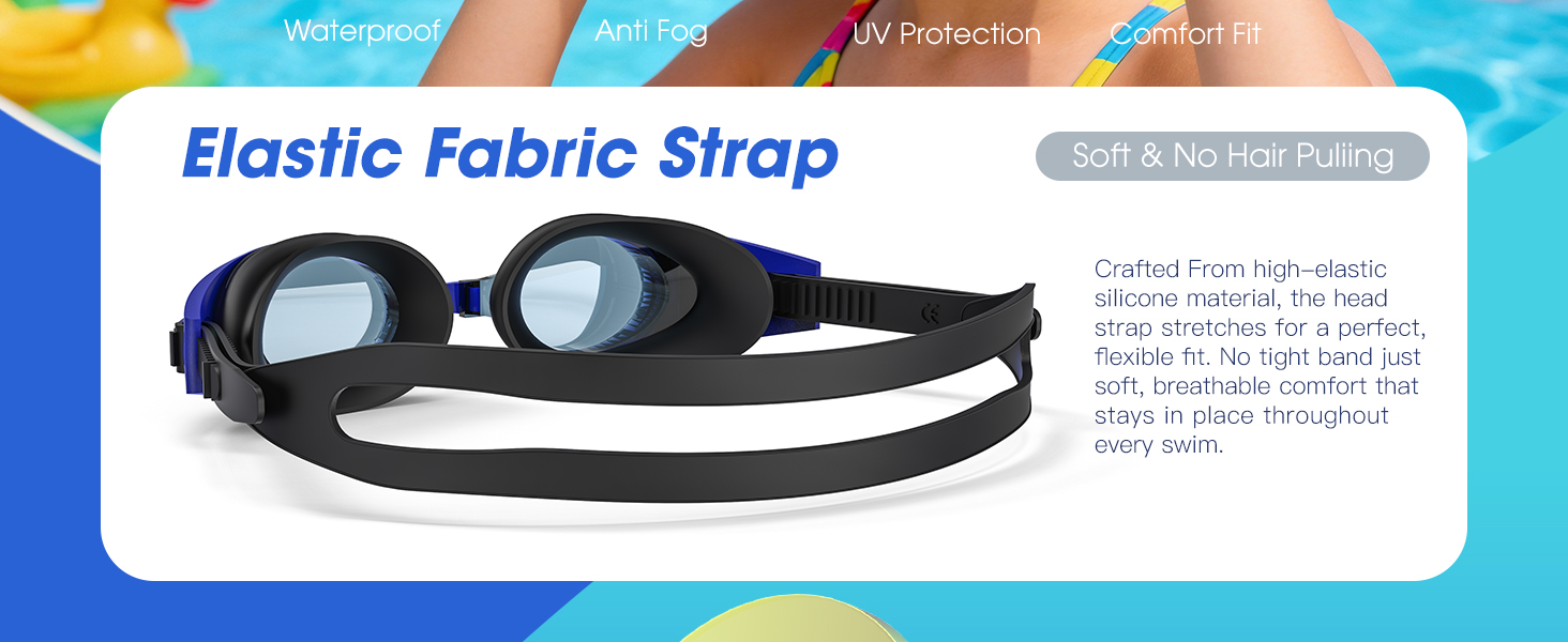 من السهل جدًا ضبط التشغيل بنقرة واحدة على الأطفال والمراهقين! تجعل الحلقات المفاجئة المصممة خصيصًا على النظارات من السهل ارتداء النظارات وخلعها، ويمكن القيام بذلك بمجرد ضغطة لطيفة. لا يوجد خطر التشابك في الشعر. الأزرار التي تمت ترقيتها أكثر قوة ويمكن أن تمنع الضرر. تضمن الأشرطة المضادة للانزلاق بقاء النظارات في وضع ثابت أثناء السباحة.