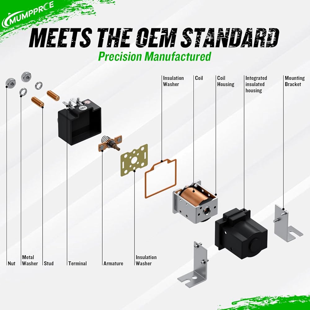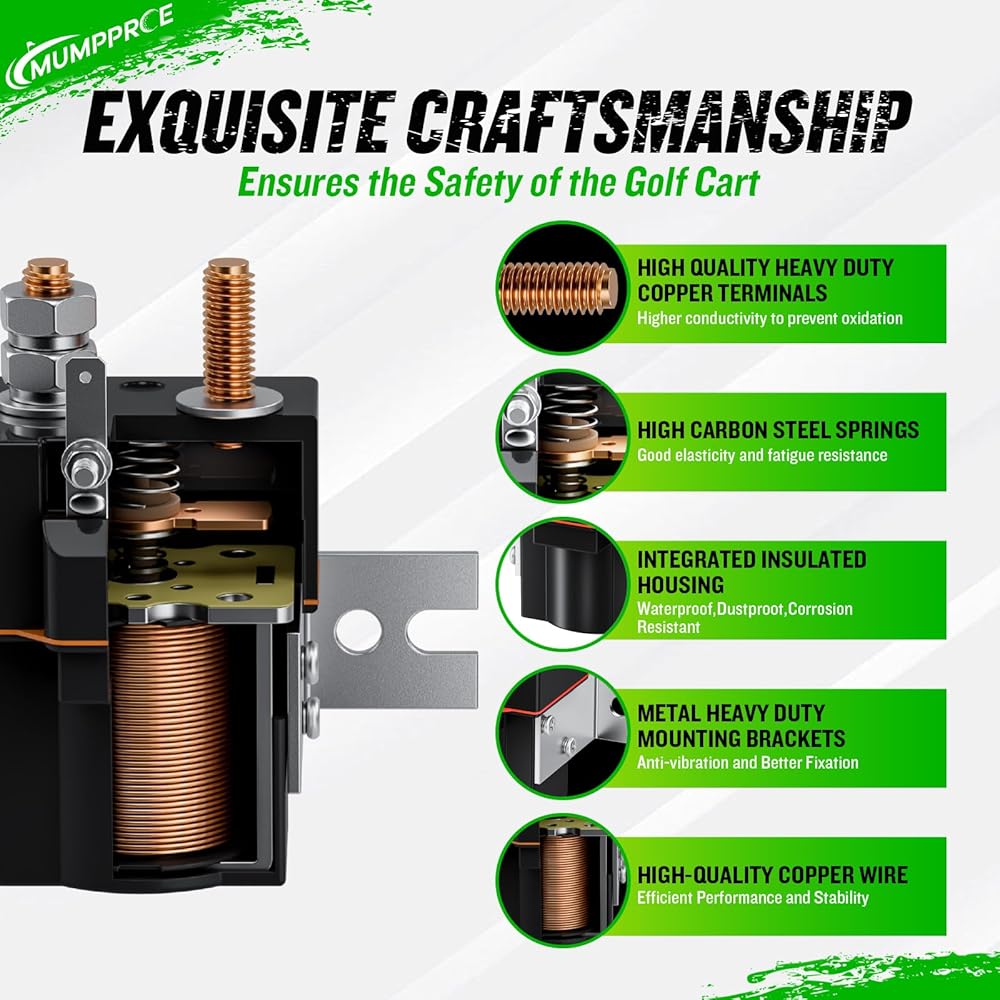 [أداء موثوق وحماية من جميع الأحوال الجوية]: مصنوع من ملف نحاسي عالي الجودة، يضمن مرحل الملف اللولبي لعربة الجولف هذا التبديل السريع والمتسق والأداء المتين. يوفر الغلاف المحكم حماية ممتازة ضد الماء والغبار، مما يضمن تشغيل الملف اللولبي الخاص بـ Club Car 48V بشكل موثوق في جميع الظروف