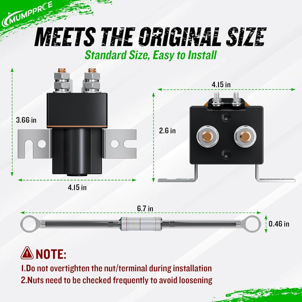 [سهولة التركيب وملاحظة هامة]: للحصول على الأداء الأمثل للملف اللولبي لعربة الجولف، يعد التثبيت الدقيق أمرًا أساسيًا. ⚠️ هام: تجنب الإفراط في ربط الصواميل الطرفية، لأن هذا هو السبب الرئيسي للتلف ولا يشمله الضمان. تحقق بشكل دوري من وجود اتصالات فضفاضة لضمان التشغيل طويل الأمد