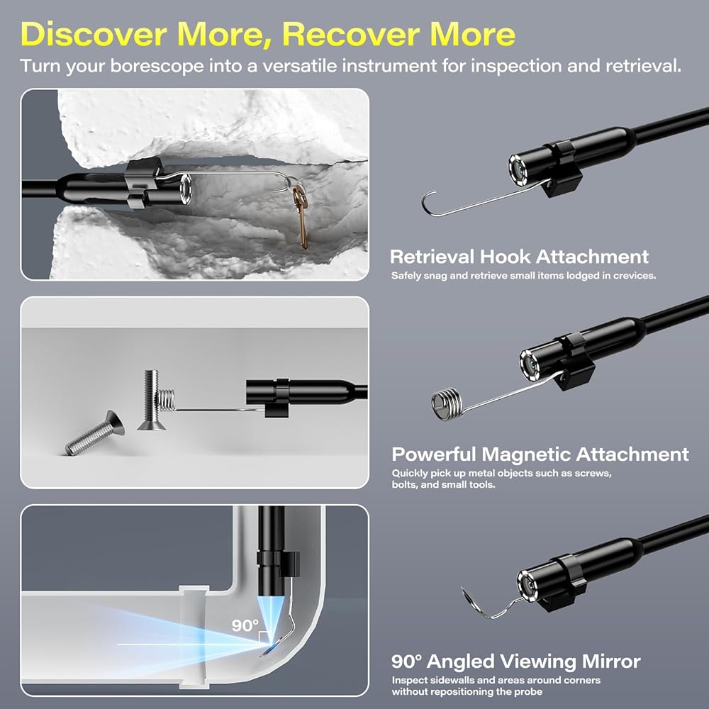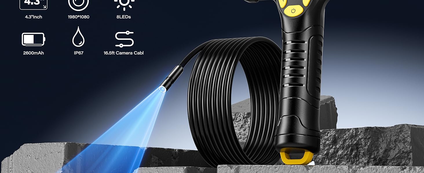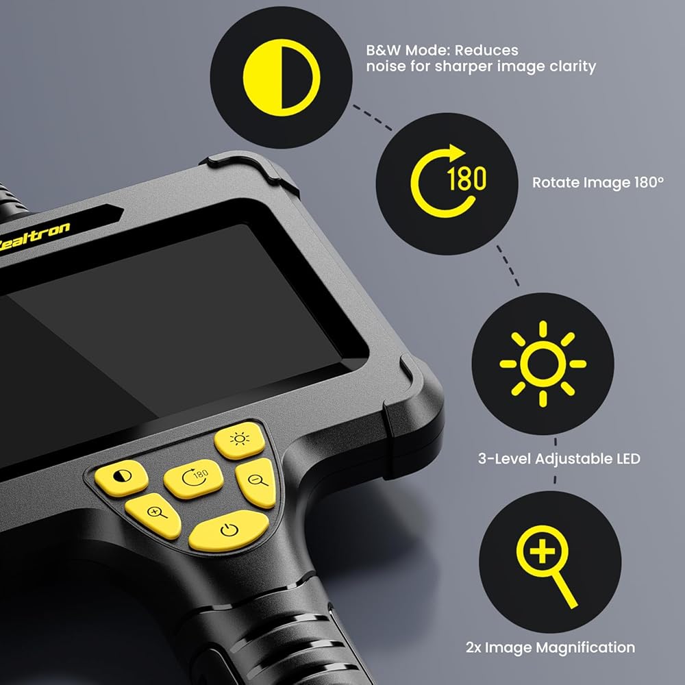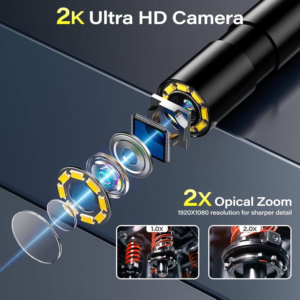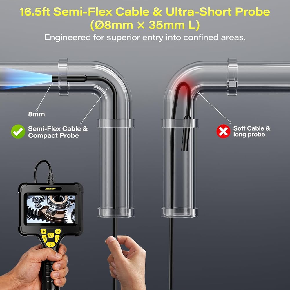 . 𝗖𝗮𝗯𝗹𝗲】تنقل في المساحات الضيقة بسهولة. ينحني الكابل شبه الصلب الذي يبلغ طوله 16.5 قدمًا ليناسب المناطق الصعبة ويحافظ على شكله للتشغيل بدون استخدام اليدين. على عكس الكابلات المرنة التي تتدلى، يبقى هذا الكابل المتين في مكانه. مثالي لإصلاح السيارات، وفحص التدفئة والتهوية وتكييف الهواء، والسباكة، والأعمال الكهربائية، وفحص الجدران، ومشاهدة غرفة احتراق المحرك.
