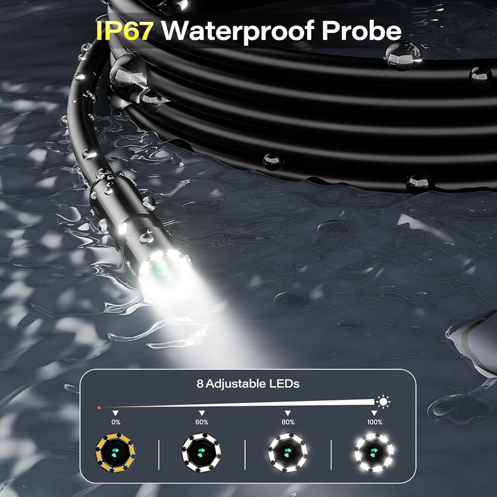بني 𝗪𝗮𝘁𝗲𝗿𝗽𝗿𝗼𝗼𝗳 𝗖𝗮𝗺𝗲𝗿𝗮】لا تفوت أي تفاصيل في المساحات المظلمة. يتميز مسبار الكاميرا الرفيع للغاية مقاس 8.0 مم بـ 8 مصابيح LED قابلة للتعديل، مما يتيح لك التحكم في السطوع للحصول على رؤية مثالية. مع المسافة البؤرية المثالية التي تتراوح بين 1.2 و3.9 بوصة (2 سم - 10 سم)، سوف تحصل على صور حادة وواضحة في كل مرة. يضمن تصنيف IP67 المقاوم للماء أداءً موثوقًا به في البيئات الرطبة أو المتربة - بدءًا من السباكة وحتى الاستخدام الخارجي.