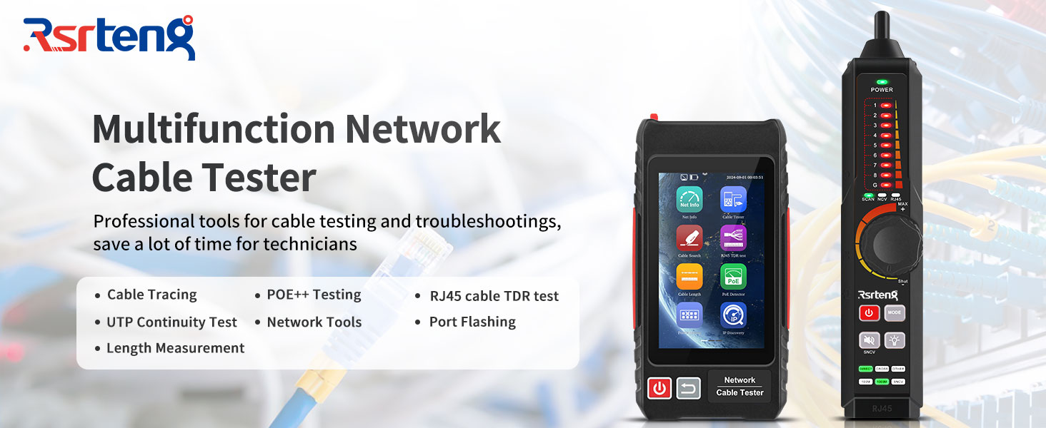 【جميع الميزات جهاز اختبار كابل الشبكة 11 في 1 】 جميع الميزات جهاز اختبار كابل إيثرنت مع شاشة لمس IPS مقاس 4 بوصة بدقة 800 × 480. يدعم اختبار الشبكة متعدد الوظائف اختبار كابل UTP، واختبار كابل RJ45 TDR، والبحث عن الكابل، وTDR3.0، وأدوات الشبكة، ومقياس المستوى المحوري، واكتشاف POE، والمقياس الرقمي المتعدد، ومقياس الطاقة الضوئية، وV-F-L، ومقياس الطول، وخادم FTP والمزيد.