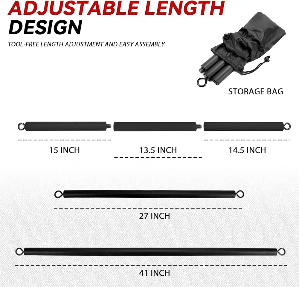 جودة عالية: شريط شريط المقاومة مصنوع من الفولاذ الكربوني، وهو مادة قوية ومتينة تتحمل الاستخدام طويل الأمد، ويمكن أن تتحمل وزنًا يصل إلى 300 رطل. يقاوم شريط المقاومة المحمول التآكل ويدعم قدرات الوزن الكبيرة