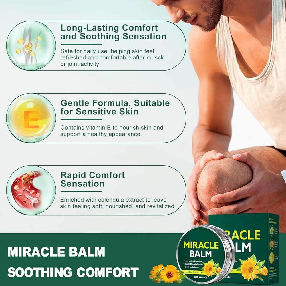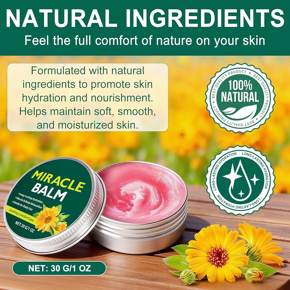 【تركيبة نباتية طبيعية】----- استمتع براحة سريعة المفعول مع بلسم ميراكل اللطيف، المركب من نباتات طبيعية مثل مستخلصات الأرنيكا والآذريون. تم تصميم هذه التركيبة اللطيفة والصديقة للبشرة لتهدئة تعب الساق والتورم وانزعاج العضلات اليومي بشكل آمن وفعال.