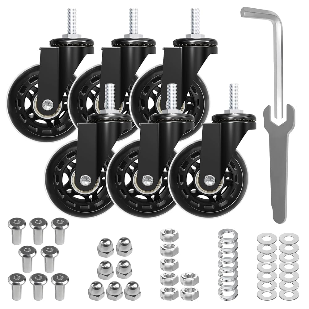 مجموعة عجلات MySit Creeper من 6 عجلات شديدة التحمل مقاس 2.5 بوصة، شفرة دوارة بديلة مطاطية 360 درجة بدون ضوضاء للمقعد الميكانيكي، مقعد المرآب المتدحرج
