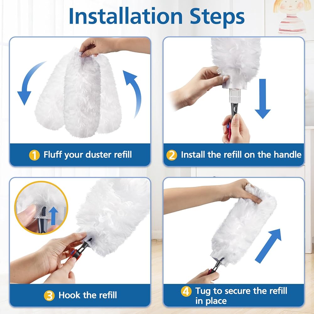 【خطاف منفضة يبقى على الخطاف】تمتع بالراحة مع عبوات منفضة الغبار الخاصة بنا والتي يسهل تبديلها وتبقى ثابتة على الخطاف. ما عليك سوى ربط رأس المنفضة، ثم شدها بلطف لضمان ملاءمة محكمة. استمتع بملاءمة موثوقة وتنظيف خالٍ من القلق مع عبوات المنفضة التي تبقى ثابتة في مكانها طوال مهام التنظيف.