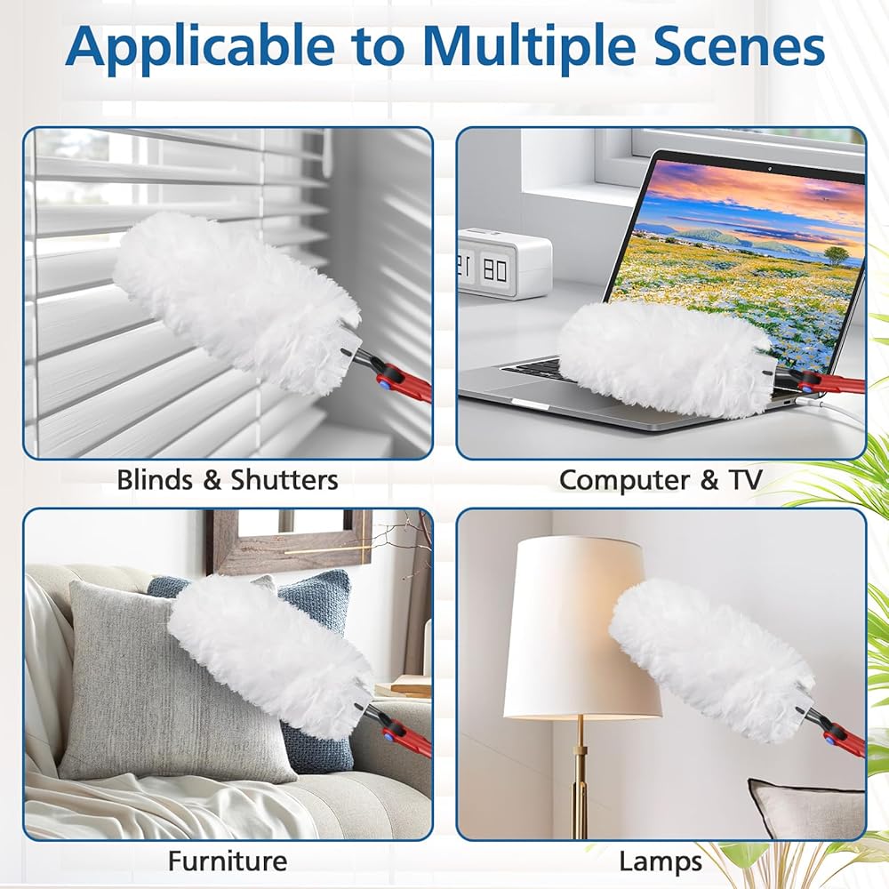 【تنظيف أكثر للغبار بمقدار 3 مرات】تتميز بتنظيف شامل بزاوية 360 درجة وامتصاص كهرباء قوي، يمكن لرؤوس الغبار هذه أن تجذب الغبار وتحمله من أي زاوية دون ترك آثار أو غبار بعد الاستخدام، مما يوفر قوة تنظيف للغبار 3 مرات أكثر من منافض الريش الأخرى.