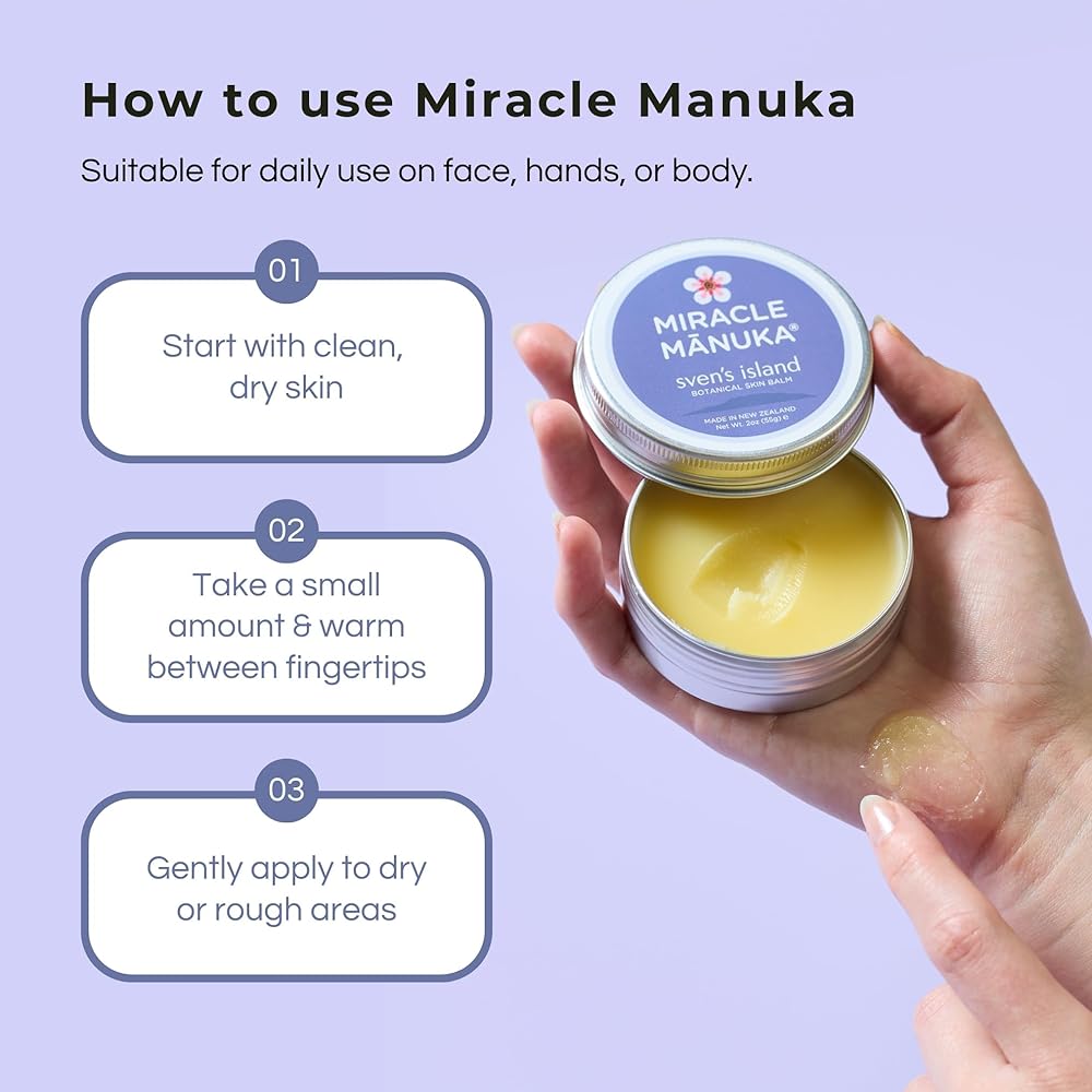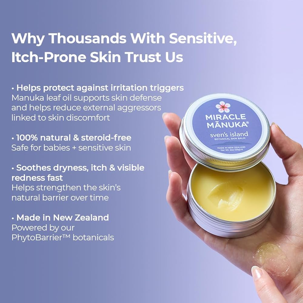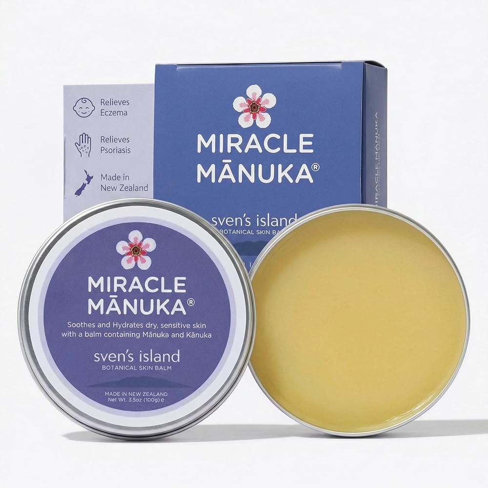 جزيرة سفين ميراكل مانوكا - بلسم طبيعي للبشرة (3.5 أونصة) | كريم الأكزيما الخالي من الستيرويد والبلسم المعجزة | معتمد من أطباء الجلدية | بزيت أوراق المانوكا | للبشرة الجافة والحساسة | صنع في نيوزيلندا