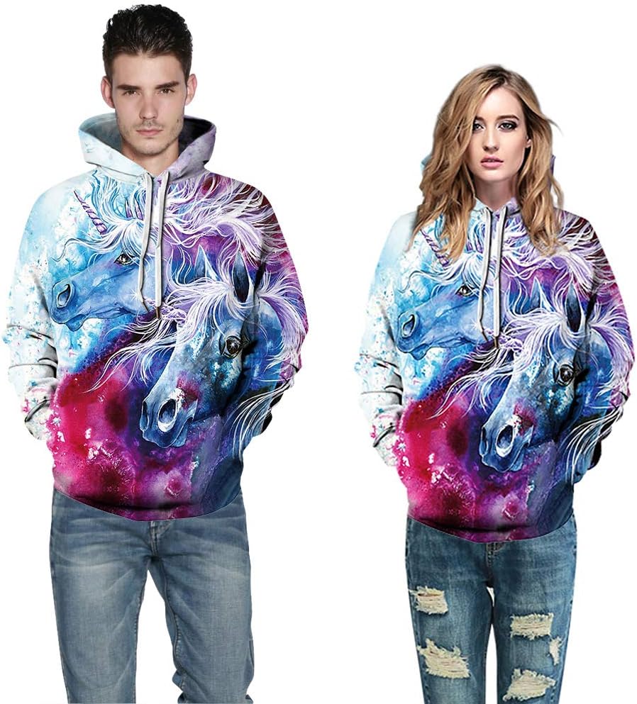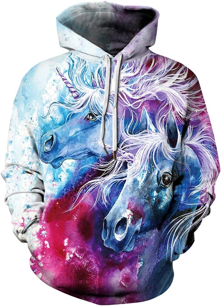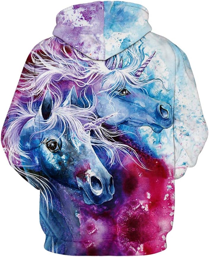 • سترة بغطاء للرأس لطيفة ثلاثية الأبعاد على شكل وحيد القرن، طباعة زاهية لا تبهت، هدية مثالية لعيد الميلاد / حفلة وحيد القرن / الكريسماس