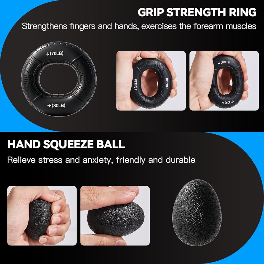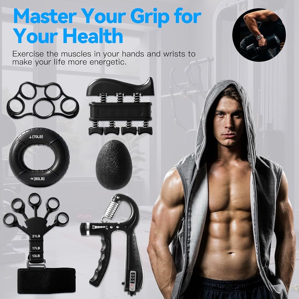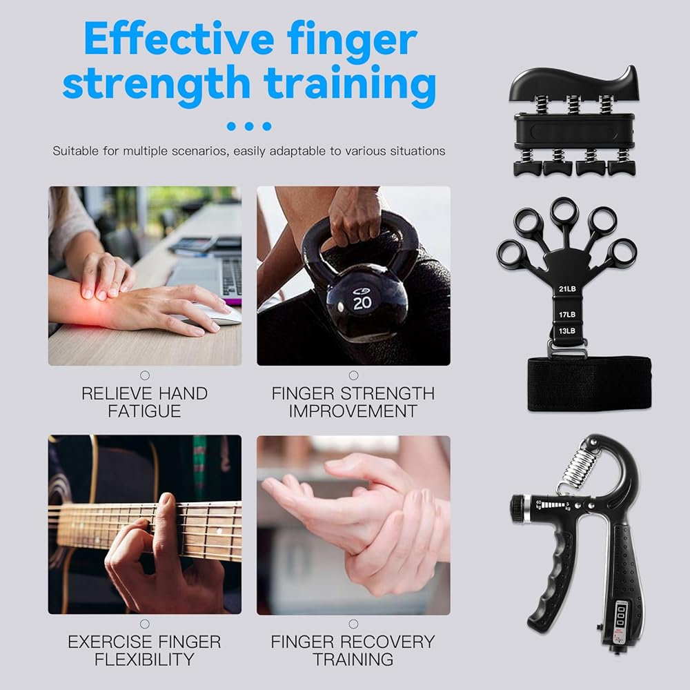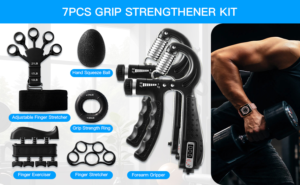 طقم تدريب قوة القبضة مكون من 7 قطع، مقابض مقاومة للساعد قابلة للتعديل، ممددات الأصابع، حلقة قبضة، كرة ضغط اليد، تمارين الأصابع، دليل المستخدم، مناسبة لتدريب اليد، مناسبة للجميع