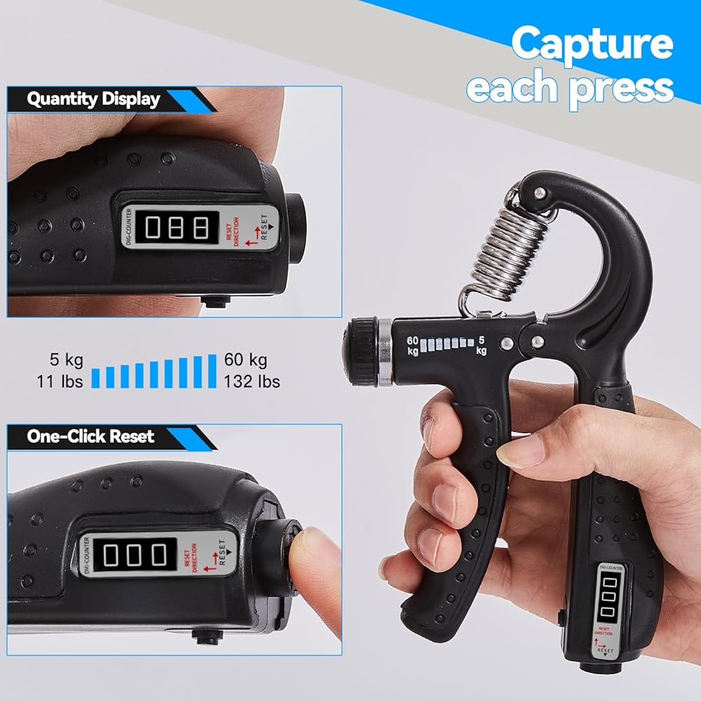 مع عداد: تم تجهيز مقبض الساعد بعداد لتسجيل عدد المقابض دون تشتيت الانتباه. يمكنك التركيز على تمرينك والشعور بتمدد عضلات يدك وتقلصها. وفي نهاية التمرين، يمكنك بسهولة رؤية النتائج على الشاشة الواضحة
