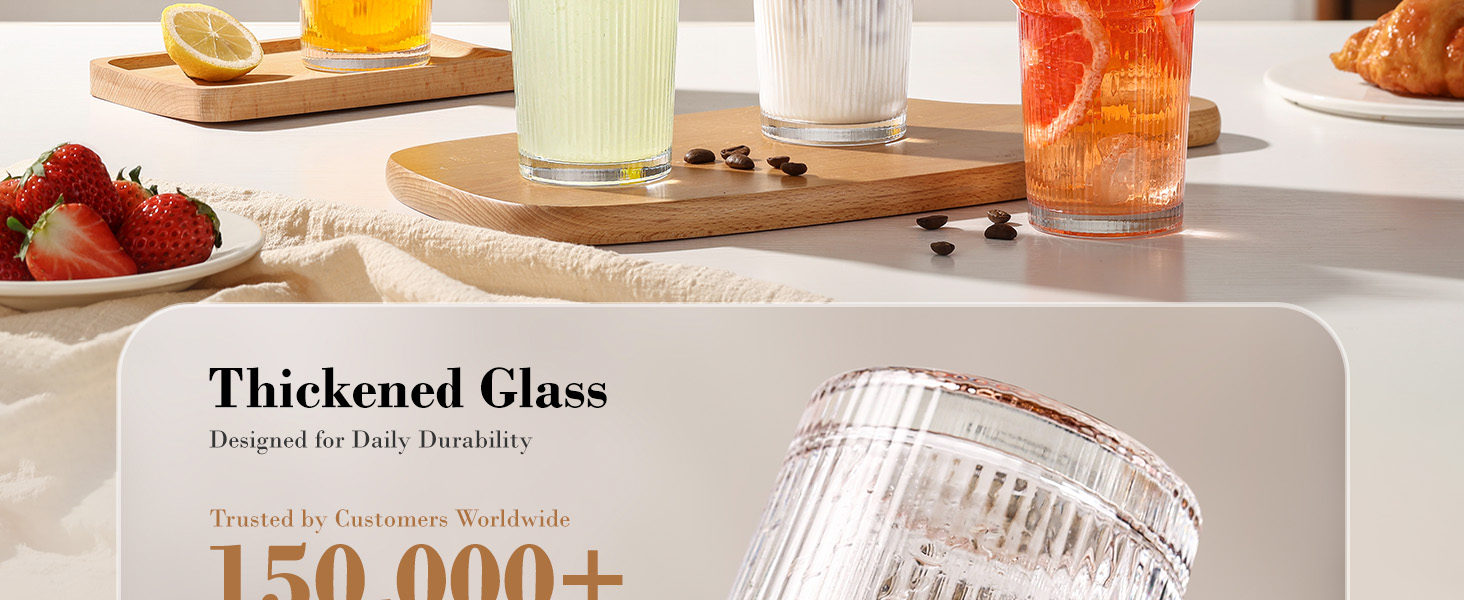 تصميم مضلع أنيق - مصنوعة من زجاج سميك مع نسيج مضلع عمودي، توفر هذه الأكواب الزجاجية الشفافة مظهرًا عصريًا وشعورًا قويًا للمشروبات اليومية