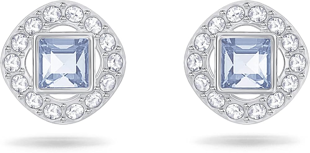 أضف إشراقة على صندوق المجوهرات الخاص بك مع هذه الأقراط المذهلة المطلية بالروديوم من سواروفسكي. تعرض هذه الأقراط كريستالات زرقاء مربعة مؤطرة بكريستال كلاسيكي. تتميز الأقراط بظهر خلفي ويبلغ قطرها 3/8 انش.