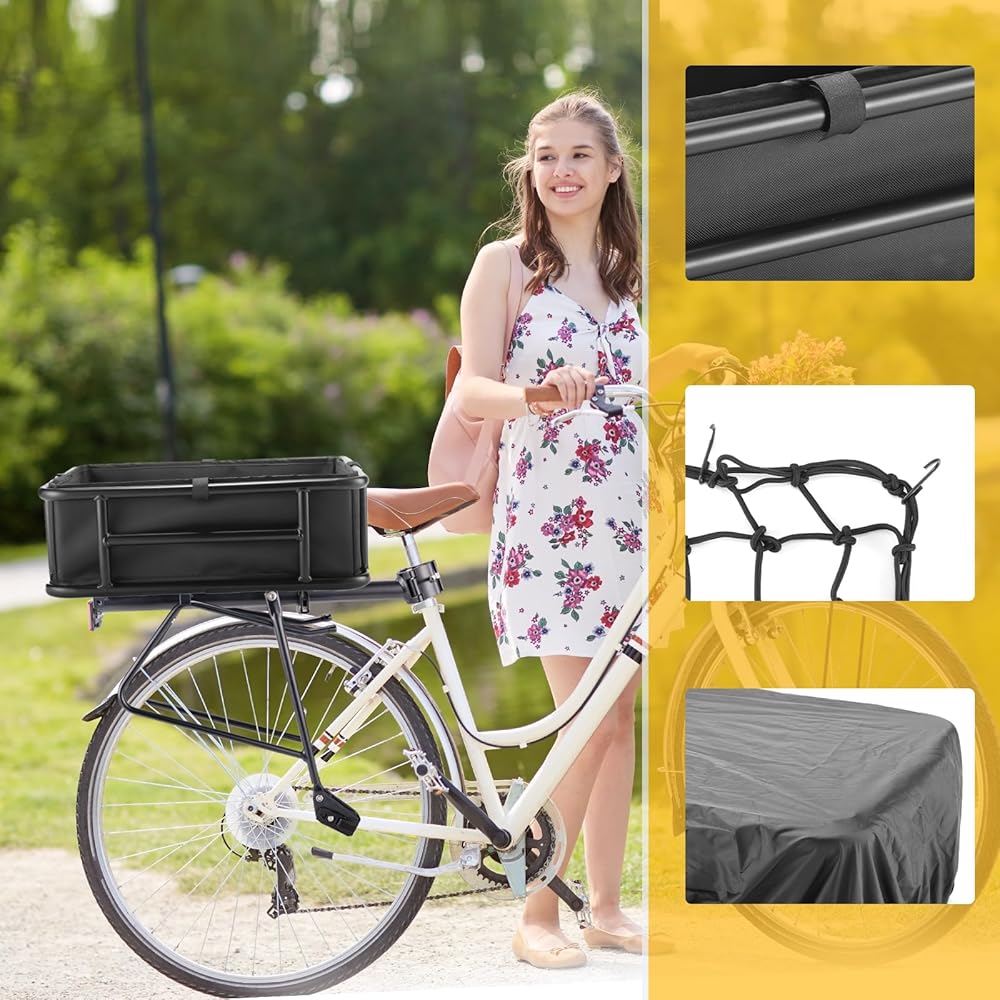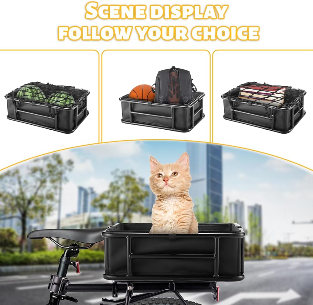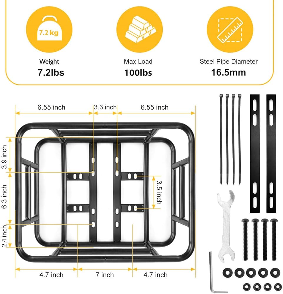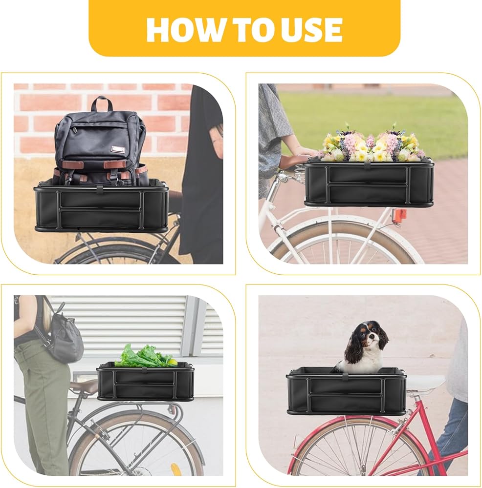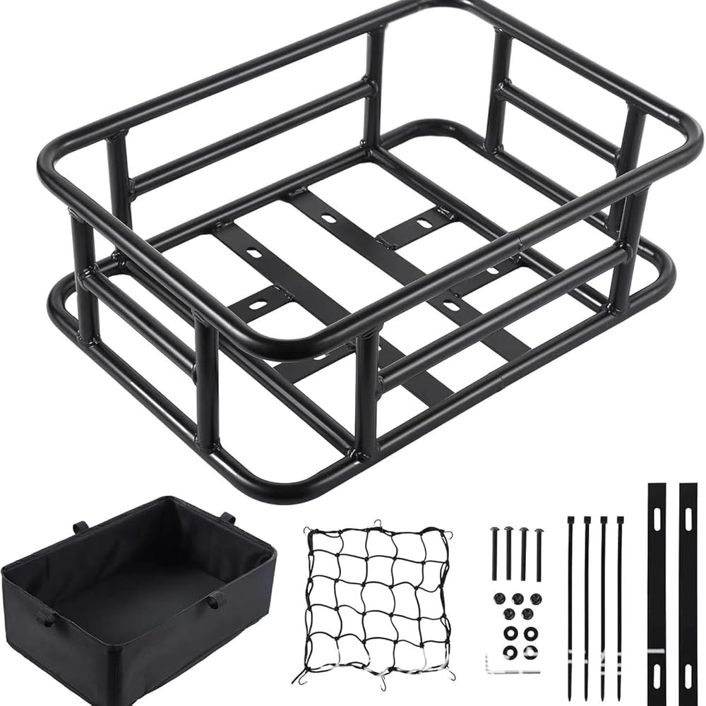 شديدة التحمل: سلة الدراجة الخلفية مصنوعة من أنابيب فولاذية سميكة مع قدرة تحمل، هيكل معدني متين، 16.53 بوصة × 12.60 بوصة × 5.90 بوصة. يمكن أن تدعم سلة الدراجة الخلفية ما يصل إلى 110 رطل، وهي مثالية لحمل الحيوانات الأليفة والبقالة وغيرها من الضروريات.