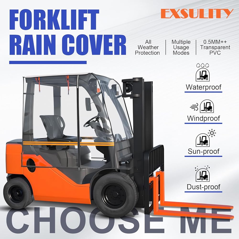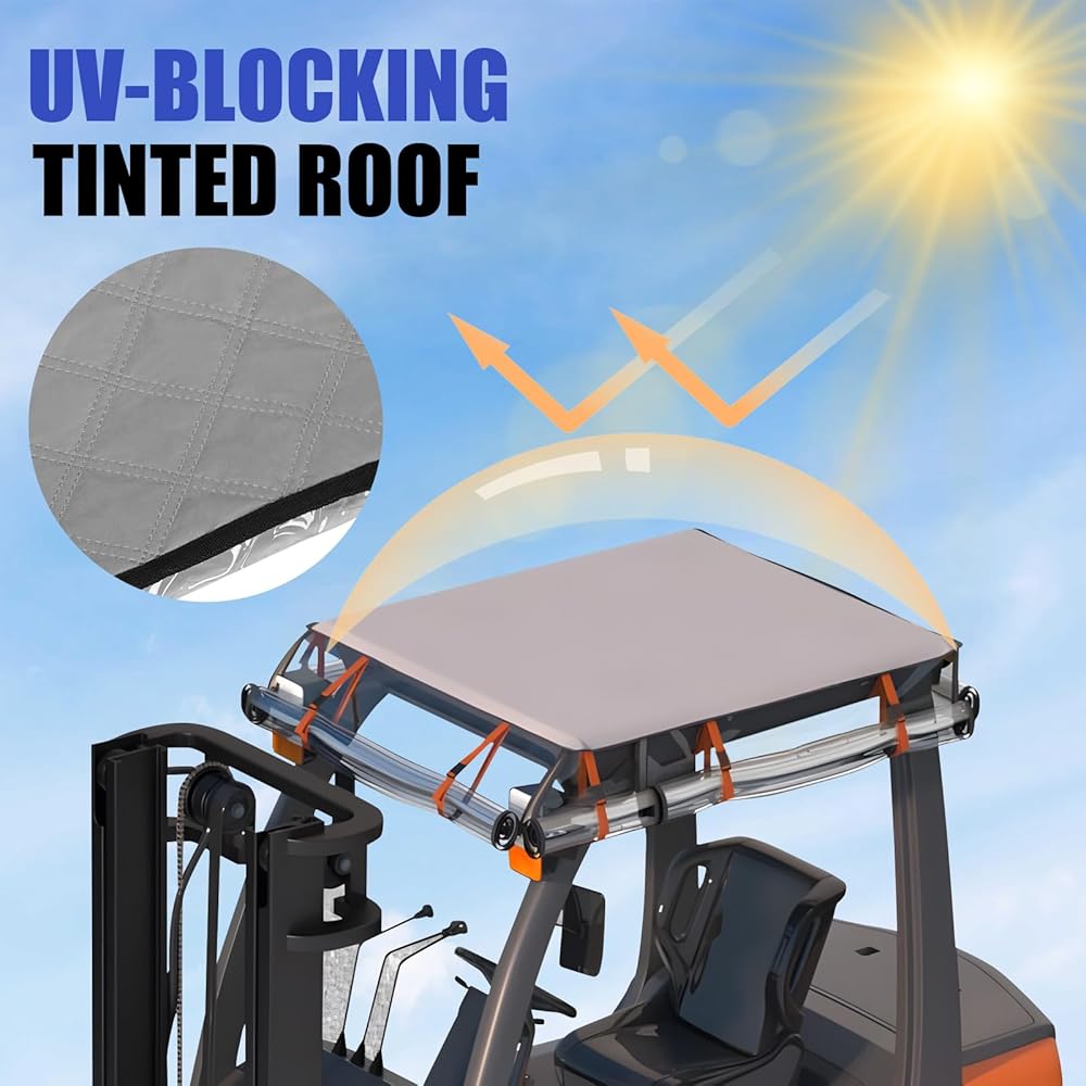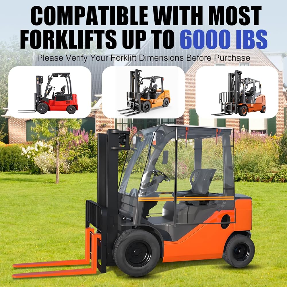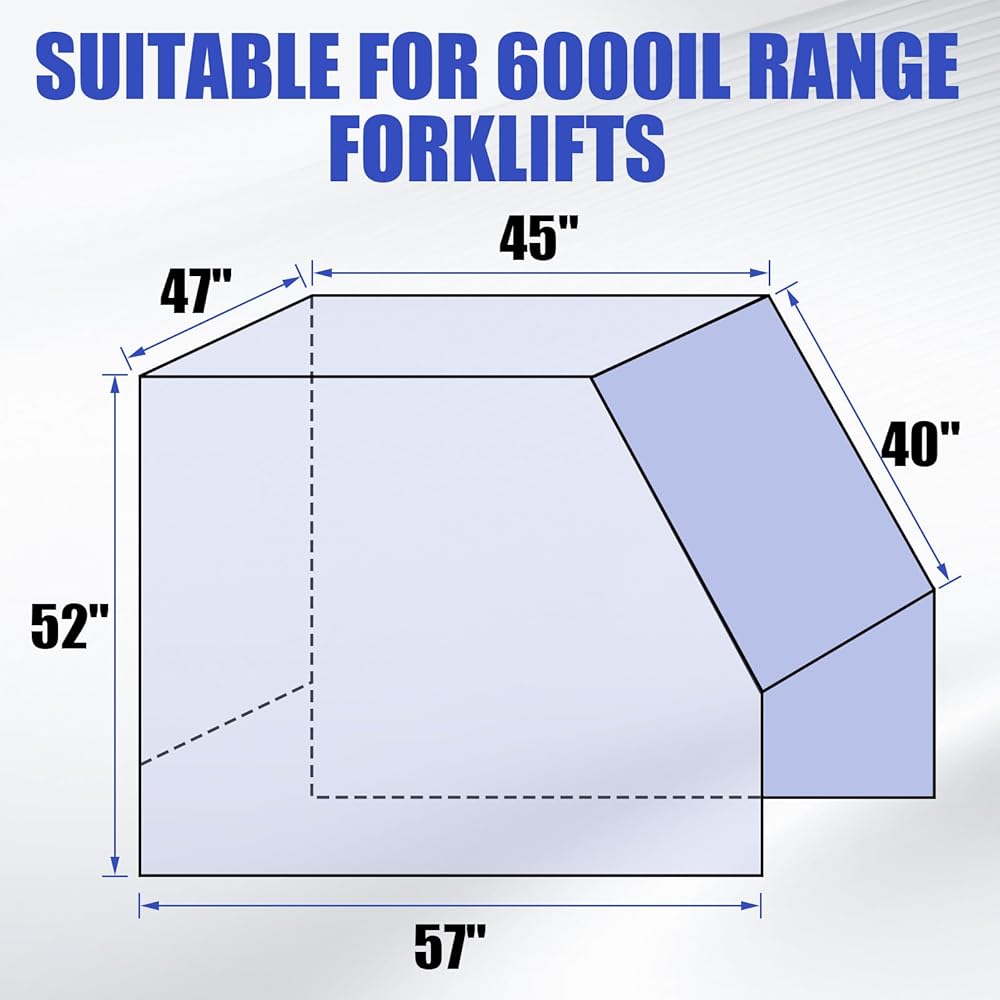 غطاء رافعة شوكية، مقاوم للطقس يناسب الجميع حتى 6000 رطل من الرافعات الشوكية، 57 بوصة علوية 45 بوصة طول × 47 بوصة عرض × 52 بوصة ارتفاع، مادة PVC شفافة مع جيب للحماية من الرياح والماء والغبار