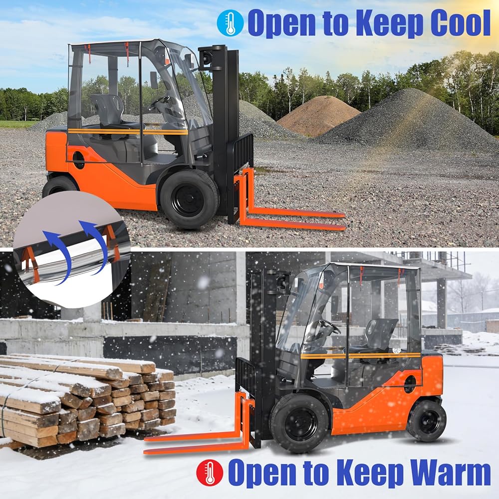 تركيب سريع، لا يتطلب فك: يتميز بتصميمات فيلكرو وسحاب، التثبيت بسيط بشكل ملحوظ. حجم معقول مع خياطة دقيقة، غطاء الرافعة الشوكية للمطر يبقى في مكانه بشكل آمن أثناء التشغيل. ملحوظة: قم بقياس أبعاد كابينة الرافعة الشوكية قبل الشراء، أو اتصل بنا للحصول على حلول مخصصة.