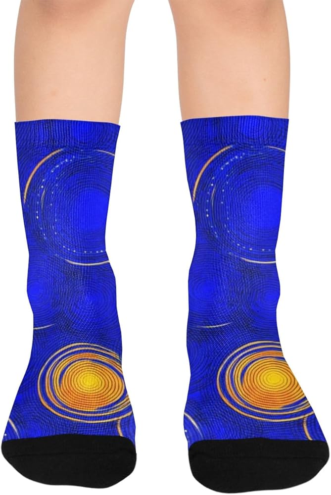 جوارب للمشي لمسافات طويلة بطبعة دوائر كونية - جوارب شتوية حرارية سميكة دافئة للأولاد والبنات الصغار للمدرسة، والارتداء اليومي والأنشطة الخارجية