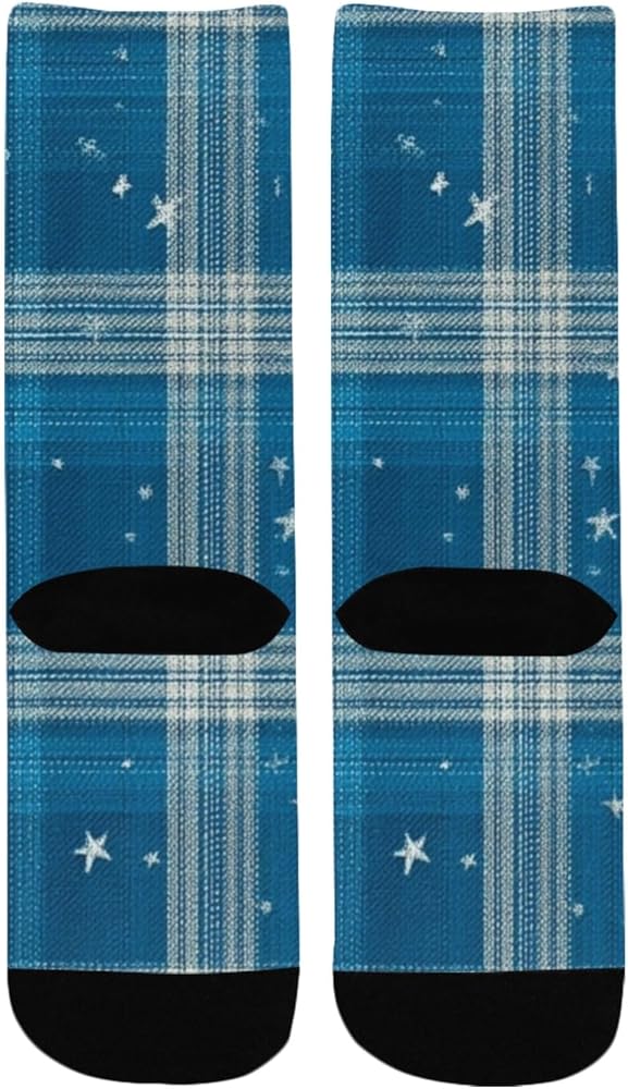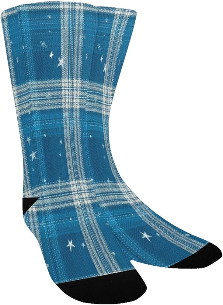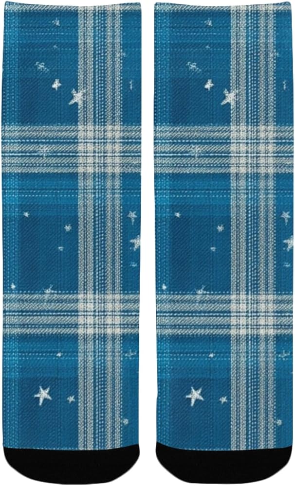 جوارب Blue Glam Plaid Art للمشي لمسافات طويلة - جوارب شتوية حرارية سميكة دافئة للأولاد والبنات للمدرسة، والارتداء اليومي والأنشطة الخارجية