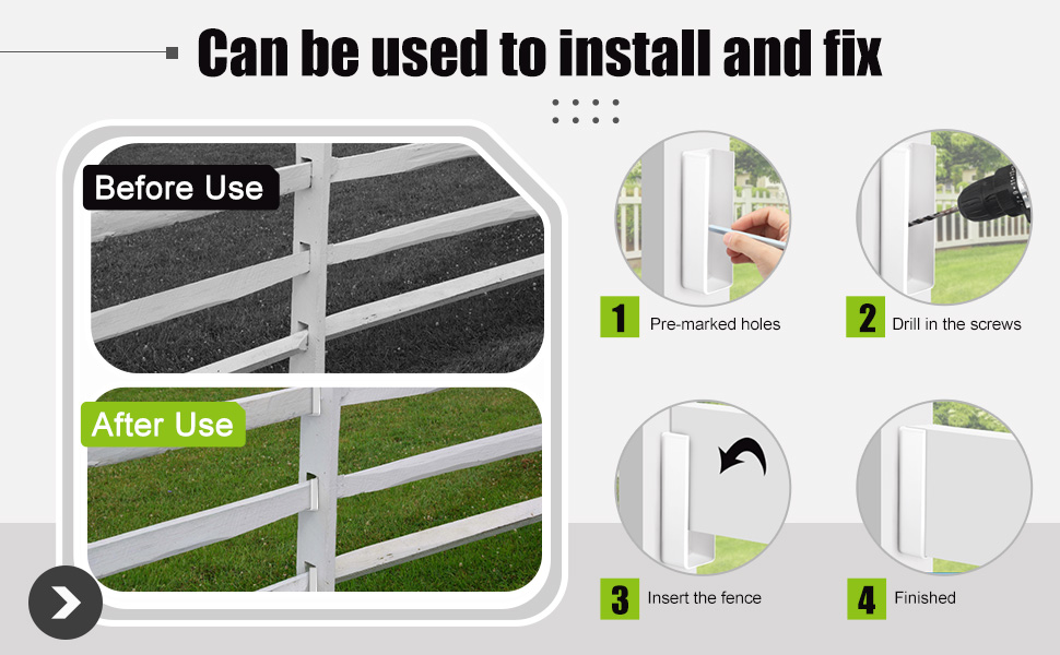 • Quality Material: these white fence brackets are made of quality durable PVC vinyl, which is waterproof, UV-resistant, and will not fade, discolor, and deform. Ensures long-lasting durability in various weather conditions
