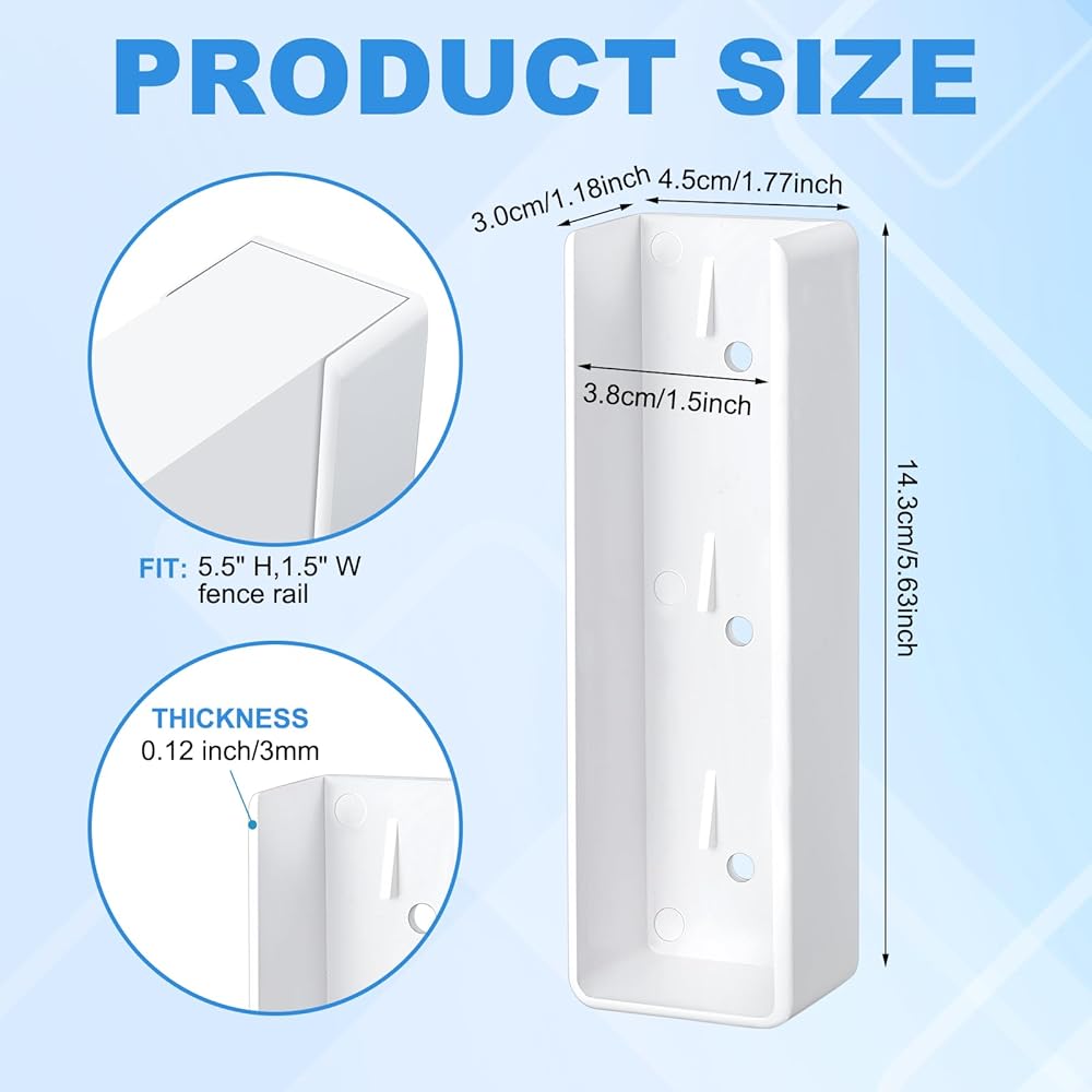 • Easy Installation: our vinyl fence bracket come in standard 1.5" x 5.5" sizes, and the U-shaped brackets fit most fence rails perfectly, allowing for quick and easy installation on standard vinyl fence post tracks
