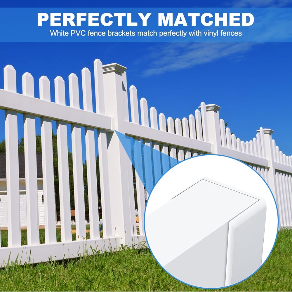 • Universal Size Compatibility: these brackets are designed to match standard vinyl fence rails, ensuring a secure installation, suitable for both DIY enthusiasts and professionals