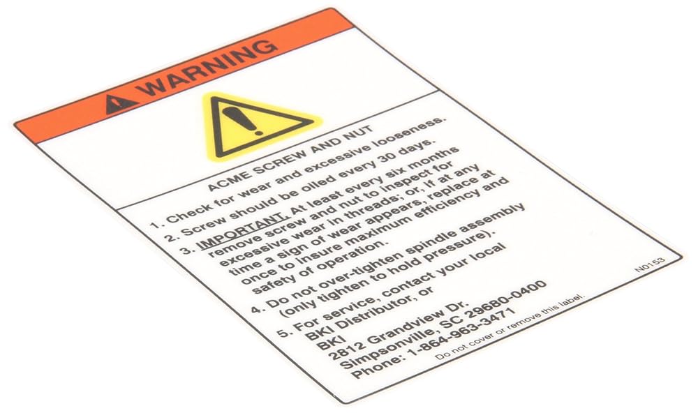 Beki N0153 Decal, FM Warning Acme Screw Genuine OEM replacement part BKI has become a leader in the barbecue and smoking equipment industry and now offers a full line of food service solutions Use genuine OEM parts for safety reliability and performance
