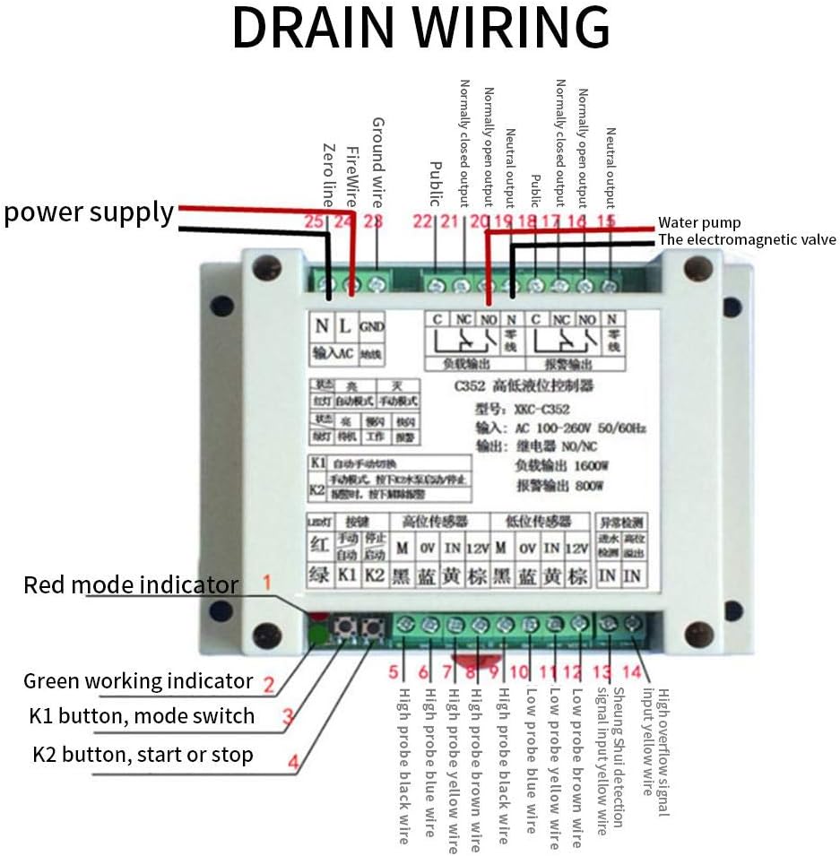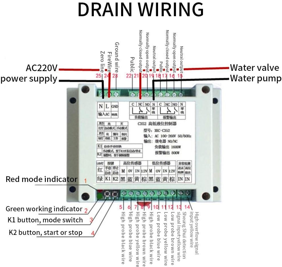 2. When the liquid level reaches a certain height, the high liquid level sensor sends a signal to activate the C352 controller to disconnect the relay and automatically stop the pump.