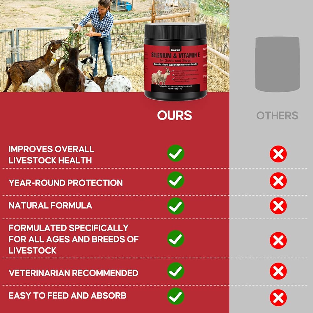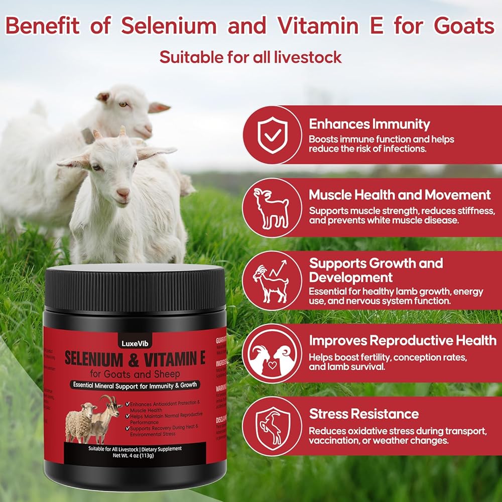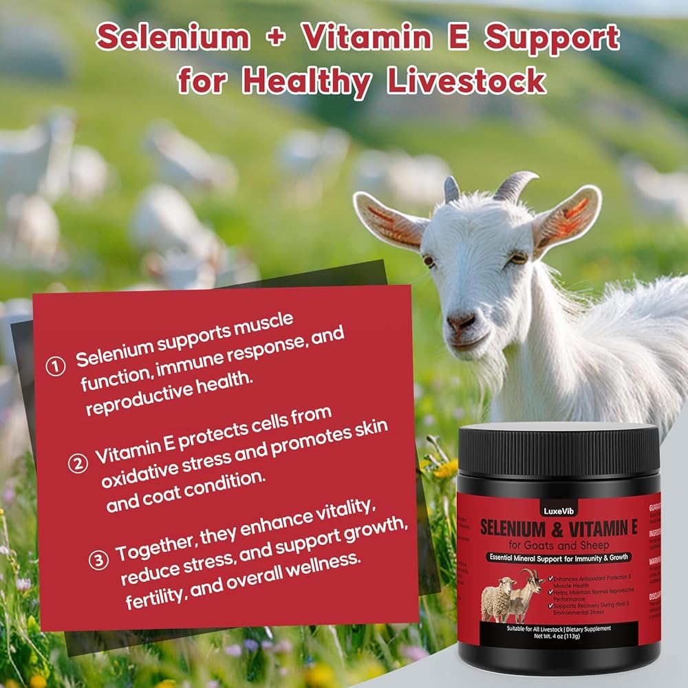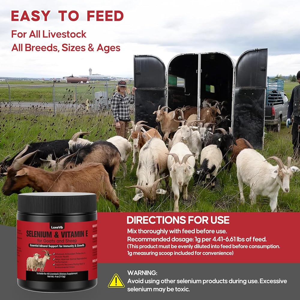 • Formulated for Goats, Sheep, Effective for All Livestock: Specially developed to provide balanced nutrition support for goat, sheep and other livestock. This E+S blend (with selenium for goat, Sheep) helps maintain vitality, balance, and overall condition in diverse livestocks of all ages.