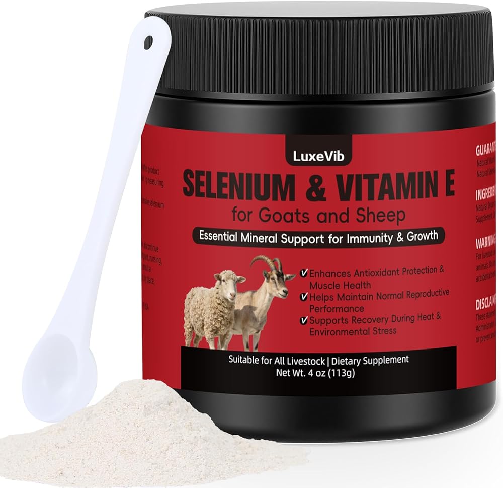 صيغة حيوية الثروة الحيوانية E و S | السيلينيوم للماعز والأغنام وجميع الماشية | مسحوق دعم المغذيات لتوازن الطاقة والتنقل | خليط أعلاف مضاف للنمو الصحي، 4 أونصة (113 جم)