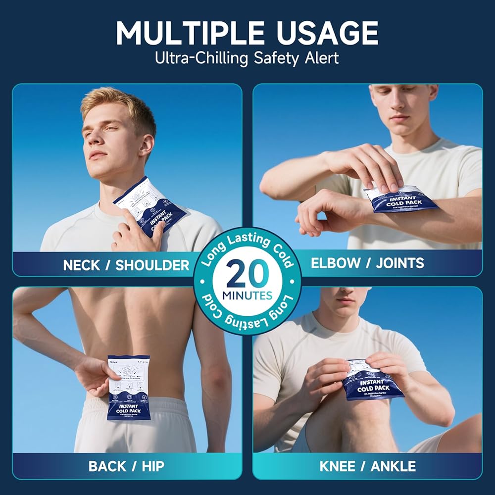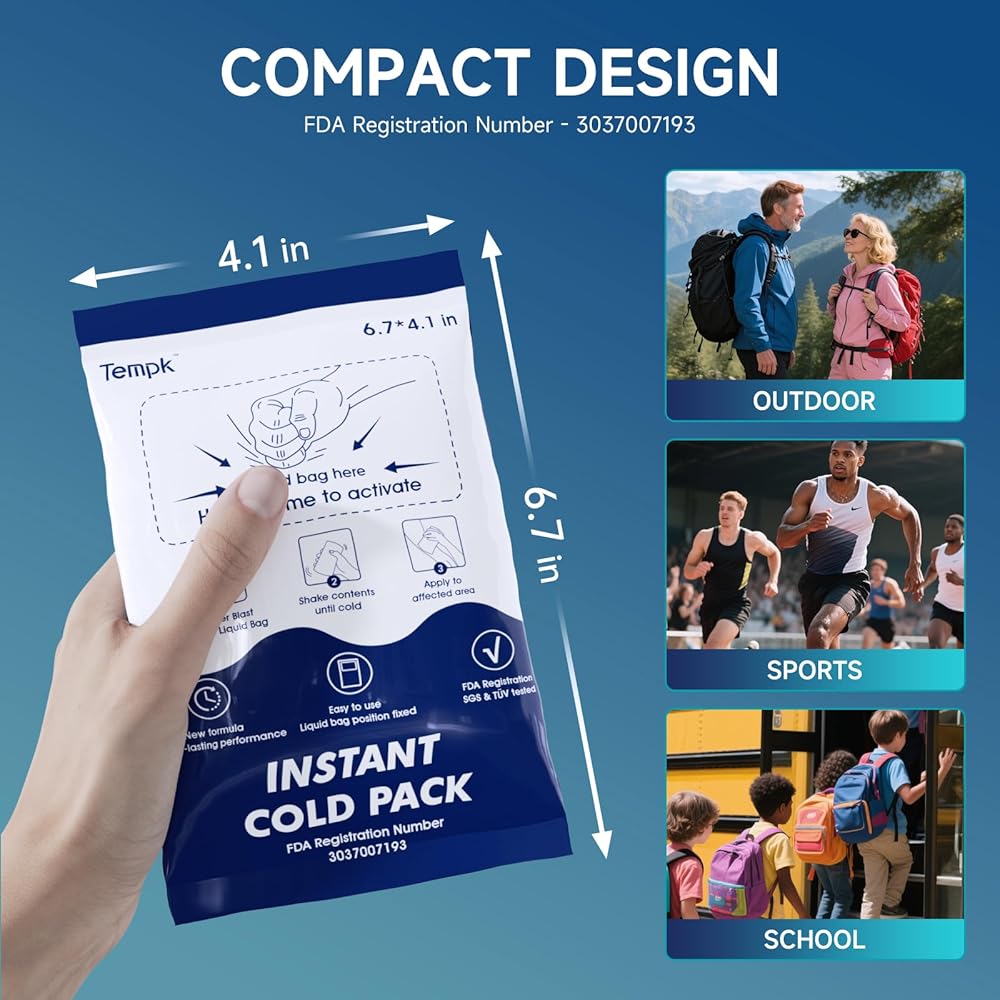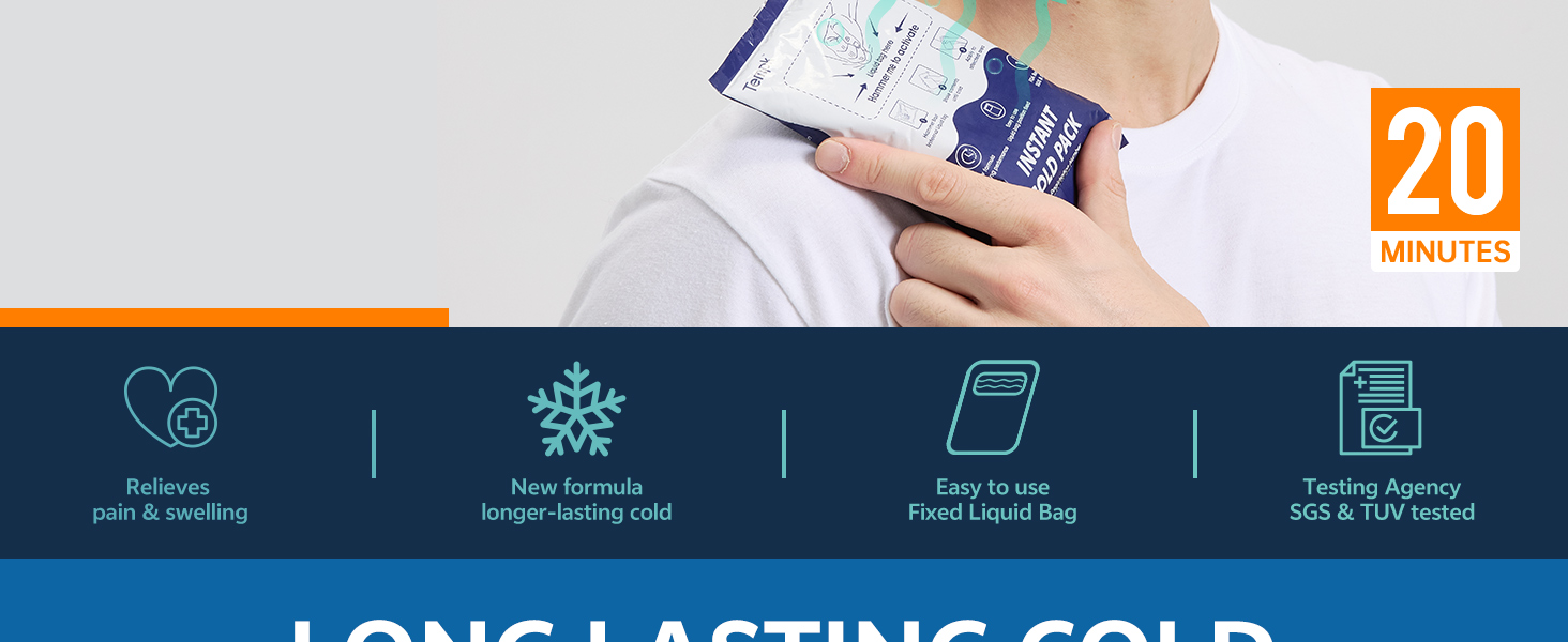 بارد يدوم طويلاً: يتم تبريده في ثانيتين، مما يوفر تخفيفًا فوريًا للألم أو التورم أو الإجهاد الحراري. يتفوق تبريده طويل الأمد على عبوات الثلج الفورية الأخرى