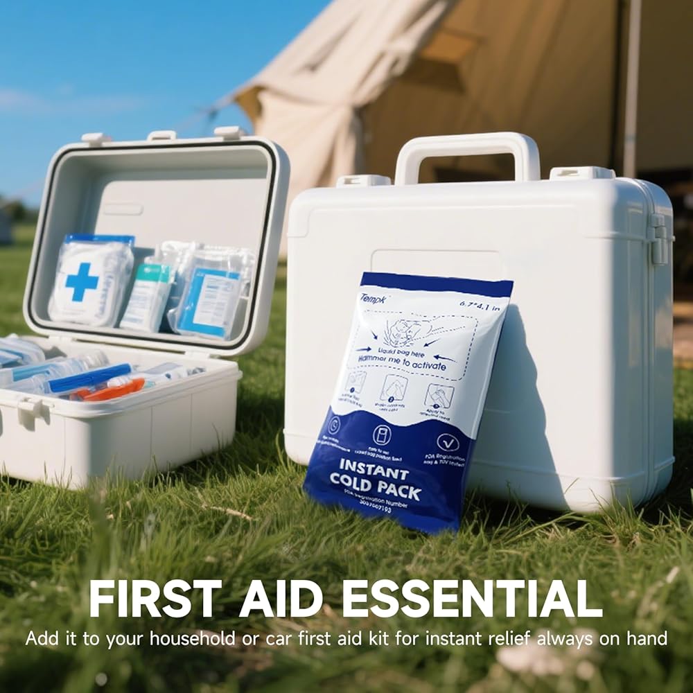 مجموعة الإسعافات الأولية الأساسية: يبلغ مقاس كل عبوة 11.43 سم × 16.71 سم، مما يجعلها مثالية لمعظم الإصابات الرياضية وأجزاء الجسم الشائعة بما في ذلك: الكاحل، والكوع، والرأس، والرقبة، والكتف، والورك، والقدم، والمعصم، والركبة، والساق، ومنطقة العجان. أضفه إلى مجموعة الإسعافات الأولية لمنزلك أو سيارتك للحصول على راحة فورية في متناول اليد دائمًا