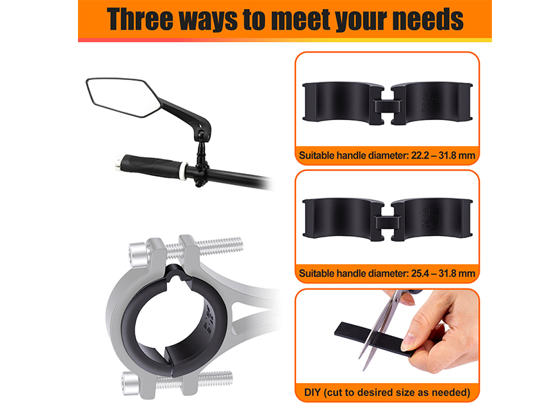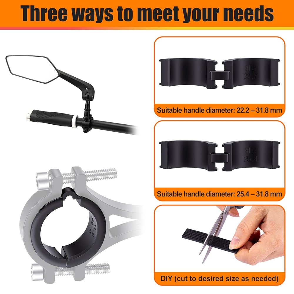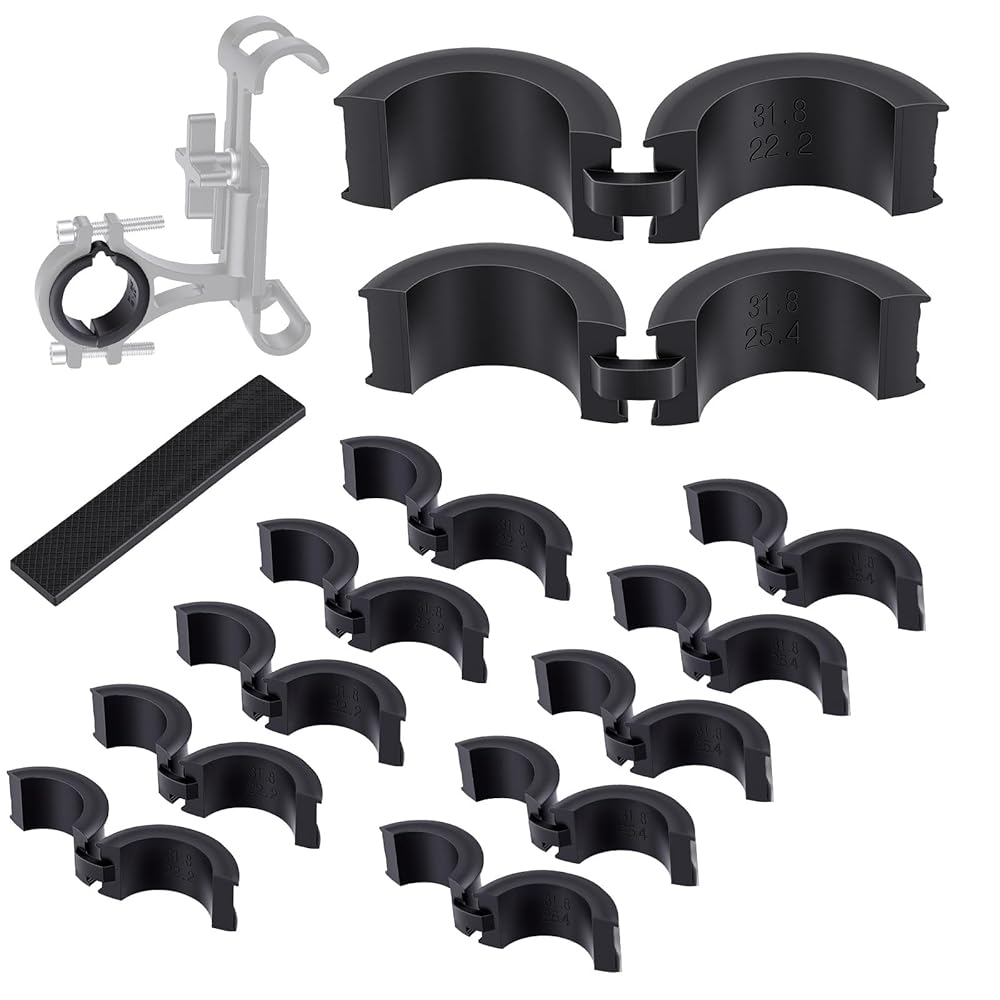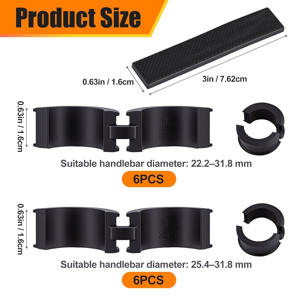 تشتمل مجموعة الحشيات المطاطية لمقود الدراجة على: 6 فواصل للمقود من 31.8 إلى 25.4، و6 فواصل للمقود من 31.8 إلى 22.2 وحشية مطاطية يمكنك صنعها بنفسك بمقاس 9*1.5 سم وسمك 3 مم لتلبية احتياجاتك من التركيب على المقاود ذات الأحجام المختلفة.