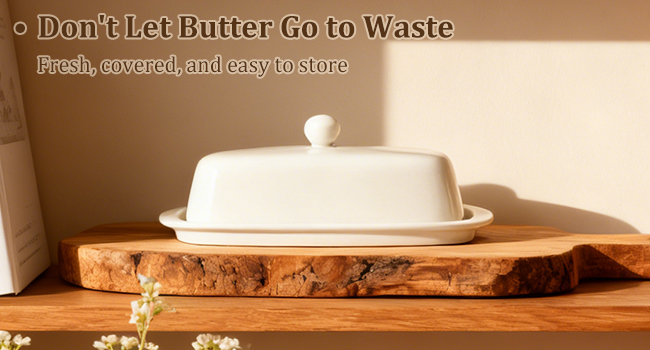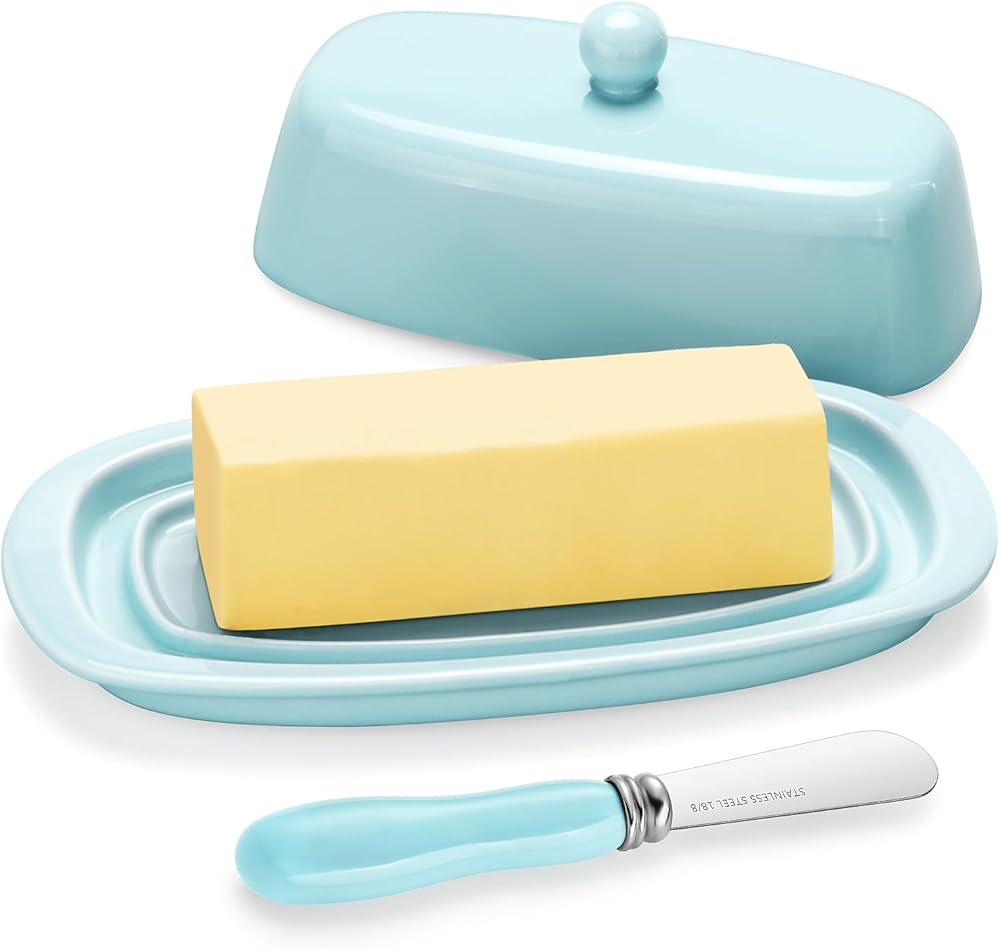 يحافظ على الزبدة طازجة ونظيفة - مصمم لمحبي الزبدة، يساعد طبق الزبدة البورسلين هذا المزود بغطاء وموزع على تخزين الزبدة بشكل صحيح، مما يبقيها طازجة وخالية من الملوثات. ما عليك سوى رفع الغطاء، ثم توزيع الزبدة الناعمة على خبزك، والاستمتاع بوجبة لذيذة