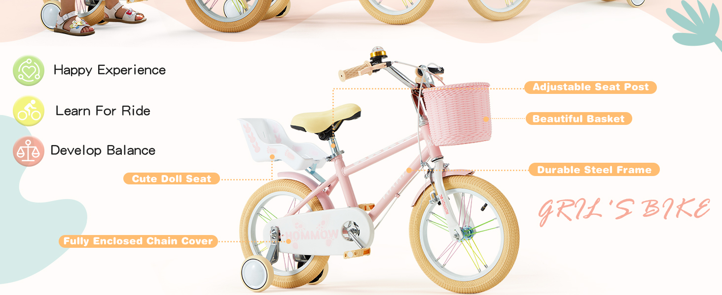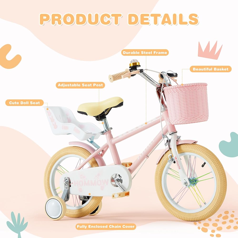 【تصميم ولون مذهلين】دراجة الأطفال HOMMOW هي دراجة ذات ألوان زاهية مصممة خصيصًا للأطفال، مع قبضة صغيرة وإطار خفيف الوزن وسهولة الركوب والتحكم. يمكن لمقعد دراجة الدمية حمل دمية جميلة، ويمكن لسلة لطيفة تخزين أي عناصر وطعام تريده، مما يضيف متعة لركوب الدراجات. متوفر باللون الوردي والأرجواني والأزرق.