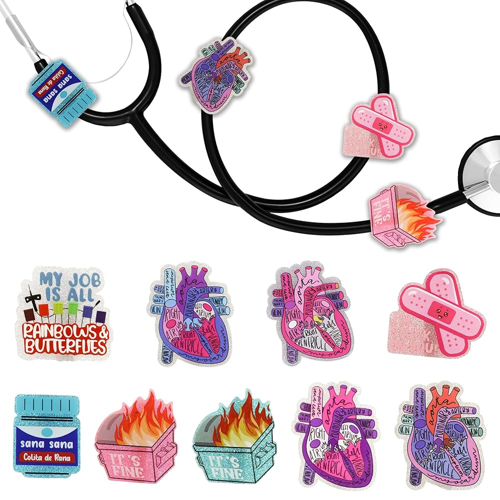 5.Ideal Gift for Healthcare Professionals: This set of stethoscope charms for nurses makes a thoughtful gift for nursing students practitioners or medical assistants they add charm and fun to everyday work while serving as functional stethoscope decorations