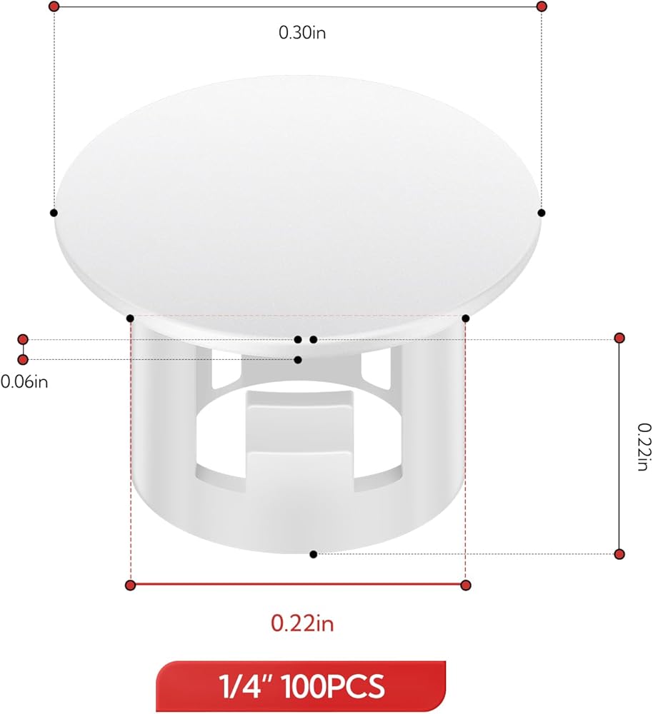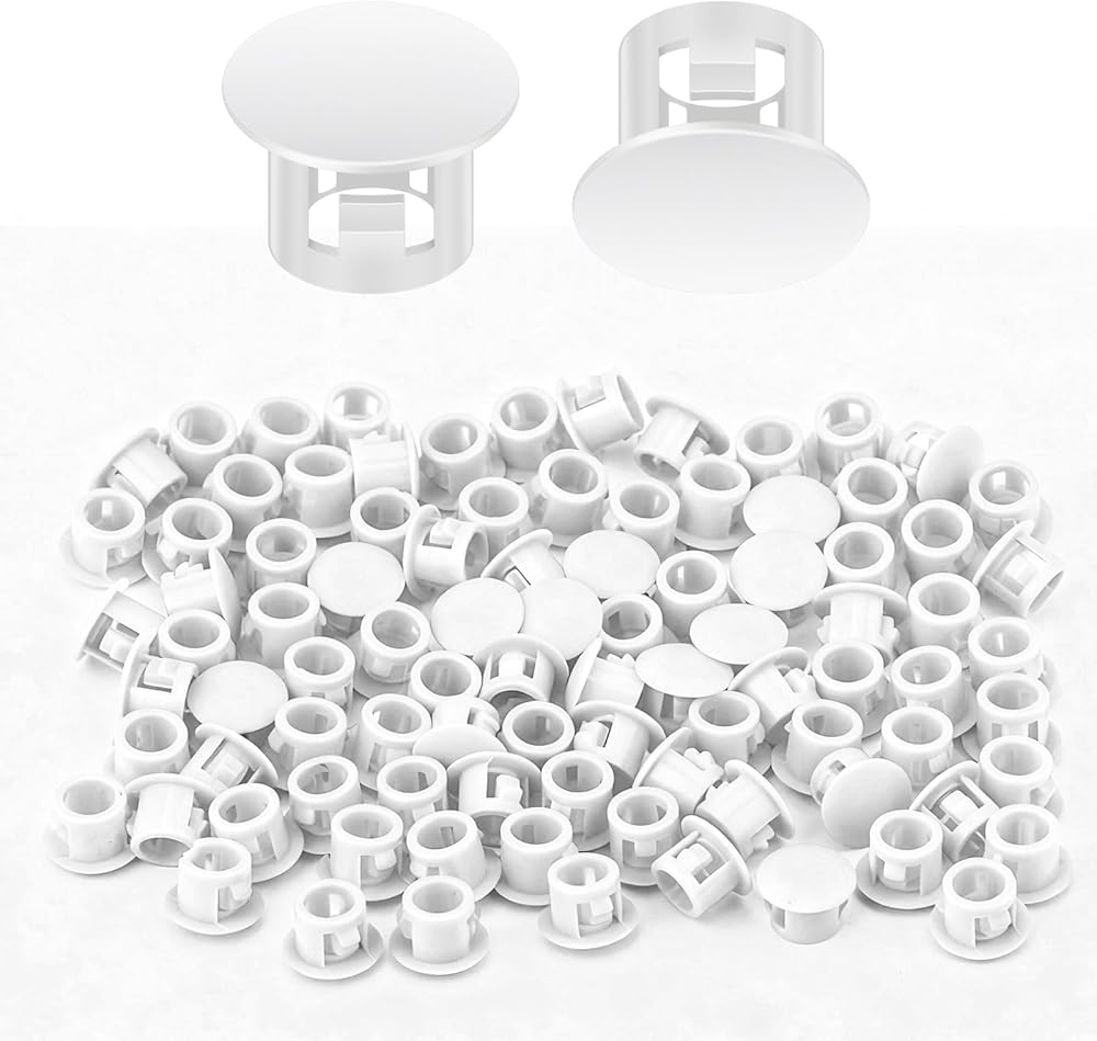 100PCS 1/4" Plastic Plugs Hole, Cabinet Hole Decorative Covers, White Plastic Plugs for Round Furniture Holes