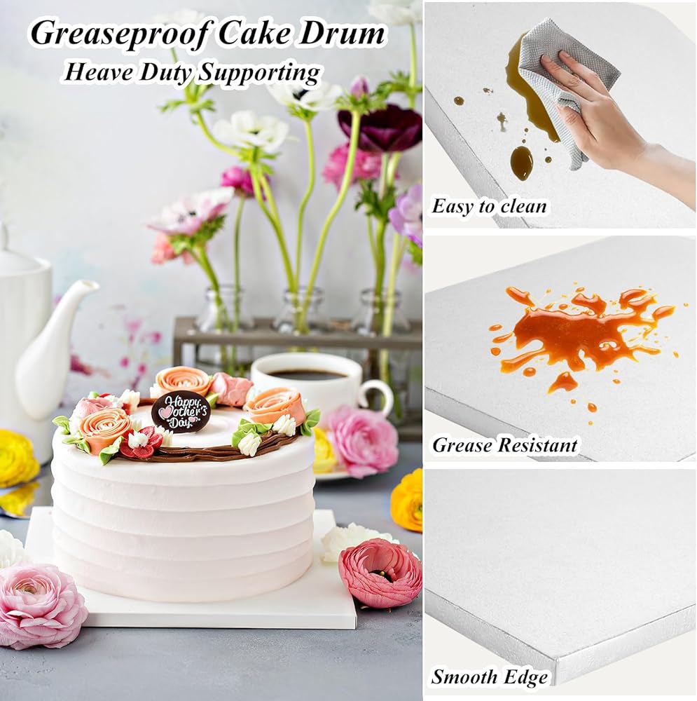 مريحة في الاستخدام: تتميز أسطوانة الكيك المربعة بسمك 1/2 بوصة مقاس 12 بوصة بسهولة التنظيف، ما عليك سوى مسح السطح والحواف لإعادة استخدامها مرارًا وتكرارًا، أو رميها بعيدًا بعد الاستخدام، مما يوفر الوقت والجهد ويمنحك تجربة مريحة.