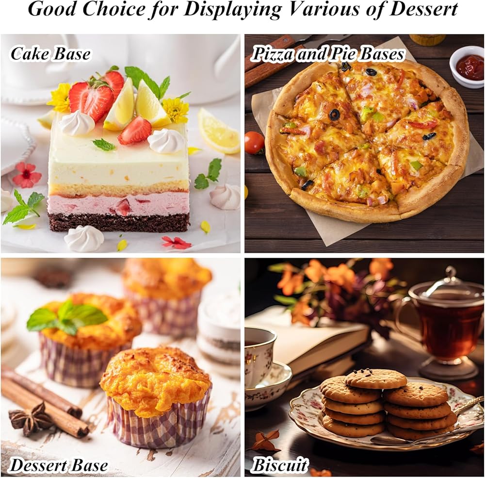 تطبيقات واسعة: لوح الكيك المربع مقاس 12 بوصة بسمك 1/2 بوصة مناسب لعرض الكعك والبيتزا والفواكه والوجبات الخفيفة، ويستخدم على نطاق واسع في مطاعم الحلوى ومتاجر الكعك وحفلات الزفاف والحفلات.