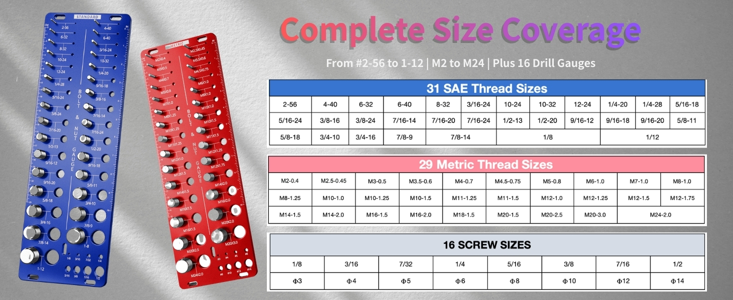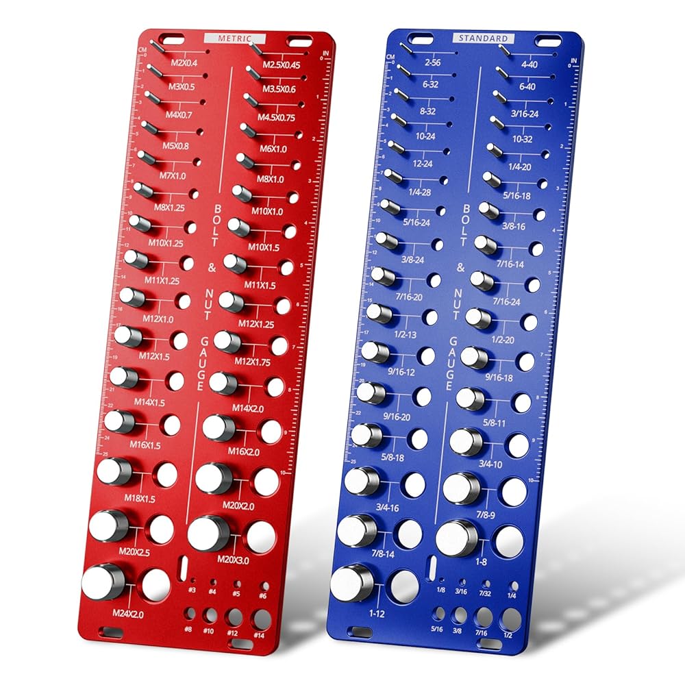 【أداة تحديد حجم المسمار النهائية المكونة من 76 قطعة】أوقف التخمين باستخدام هذا المدقق الشامل لخيوط الصواميل والمسمار. تحدد هذه المجموعة الرئيسية بدقة 76 مقاسًا مختلفًا، بما في ذلك 29 مقاسًا متريًا (M2x0.4 إلى M24x2.0)، و31 معيار SAE (#2-56 إلى 1-12)، و16 مقياسًا لقمة الثقب. إنه مكتشف حجم الترباس الأساسي للتعرف بسرعة على أي مسامير وصواميل في المرآب أو ورشة العمل الخاصة بك